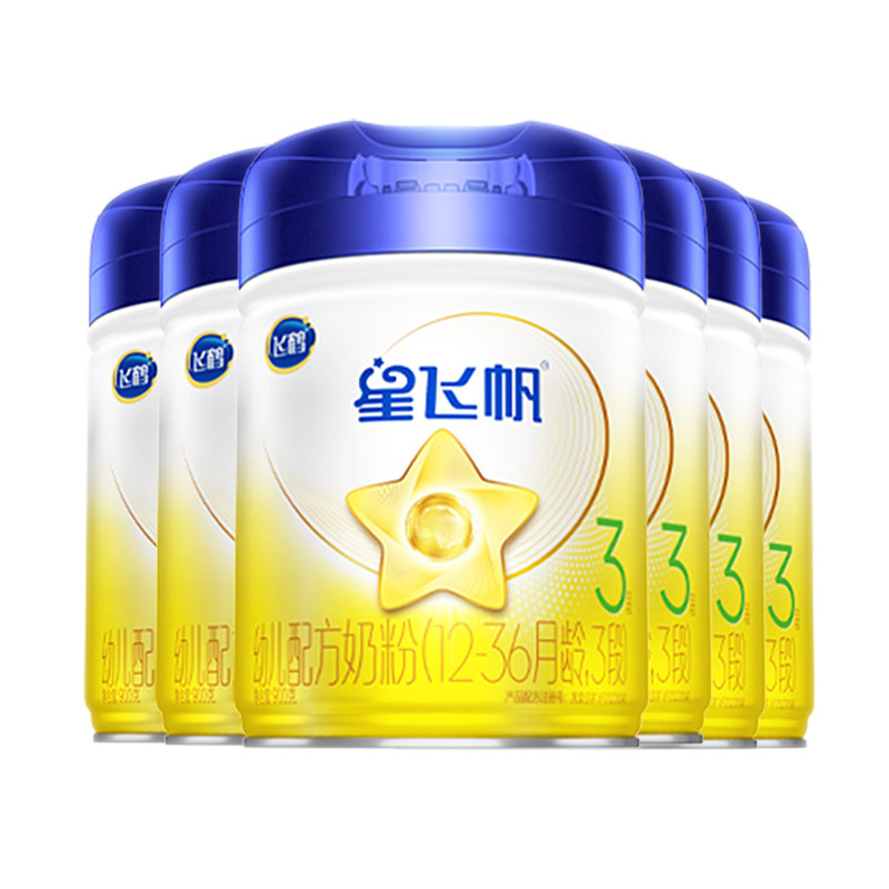 育儿补贴】飞鹤星飞帆3段婴幼儿牛奶粉三段900g6罐装官方正品