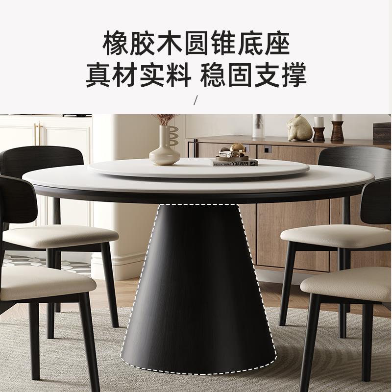 岩板圆形实木餐桌椅组合简约圆桌带转盘饭桌家用酒店电磁炉大圆桌