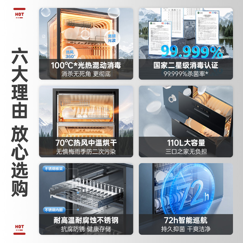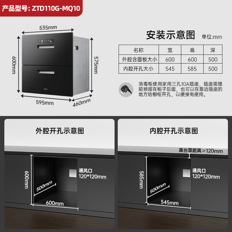 【两抽】苏泊尔MQ10消毒柜聚合家用嵌入式餐具高温二星级303E508