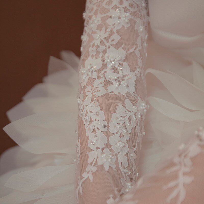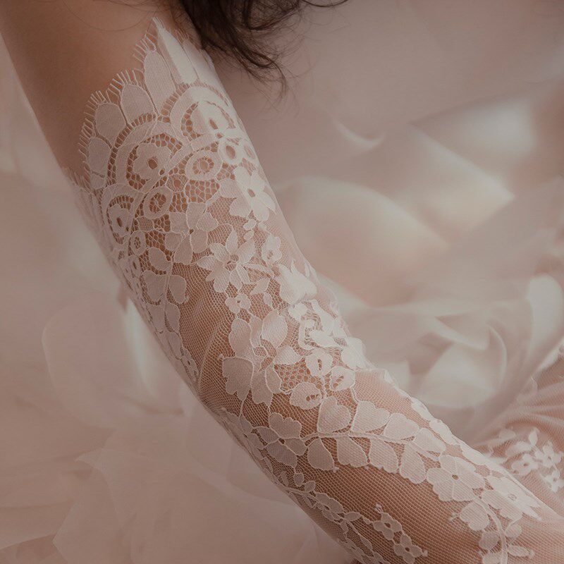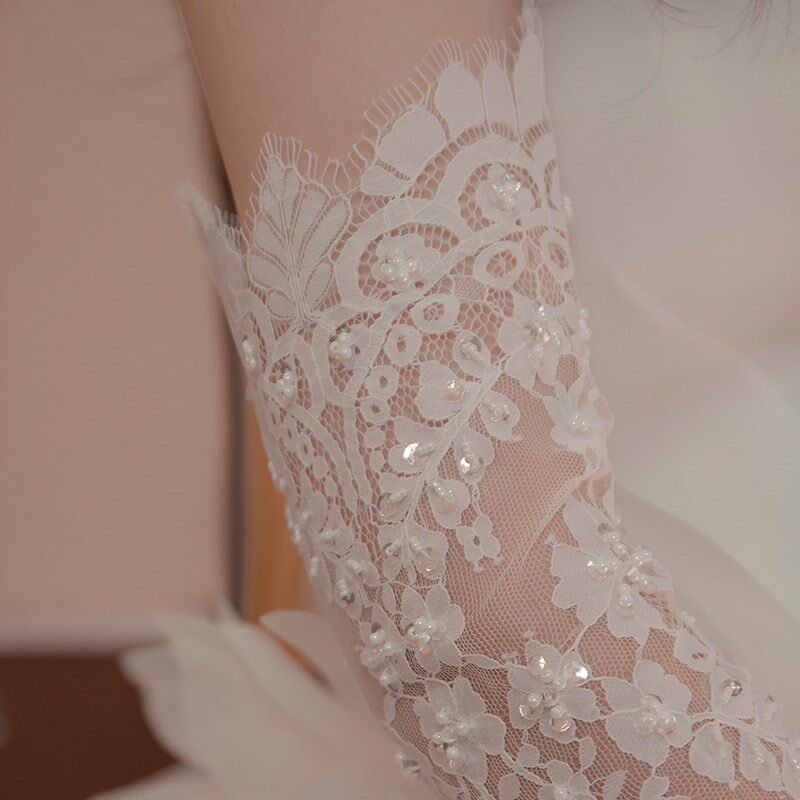 《吉设计》新娘婚纱礼服蕾丝韩式法式薄纱透明精致蕾丝钉珠长手套