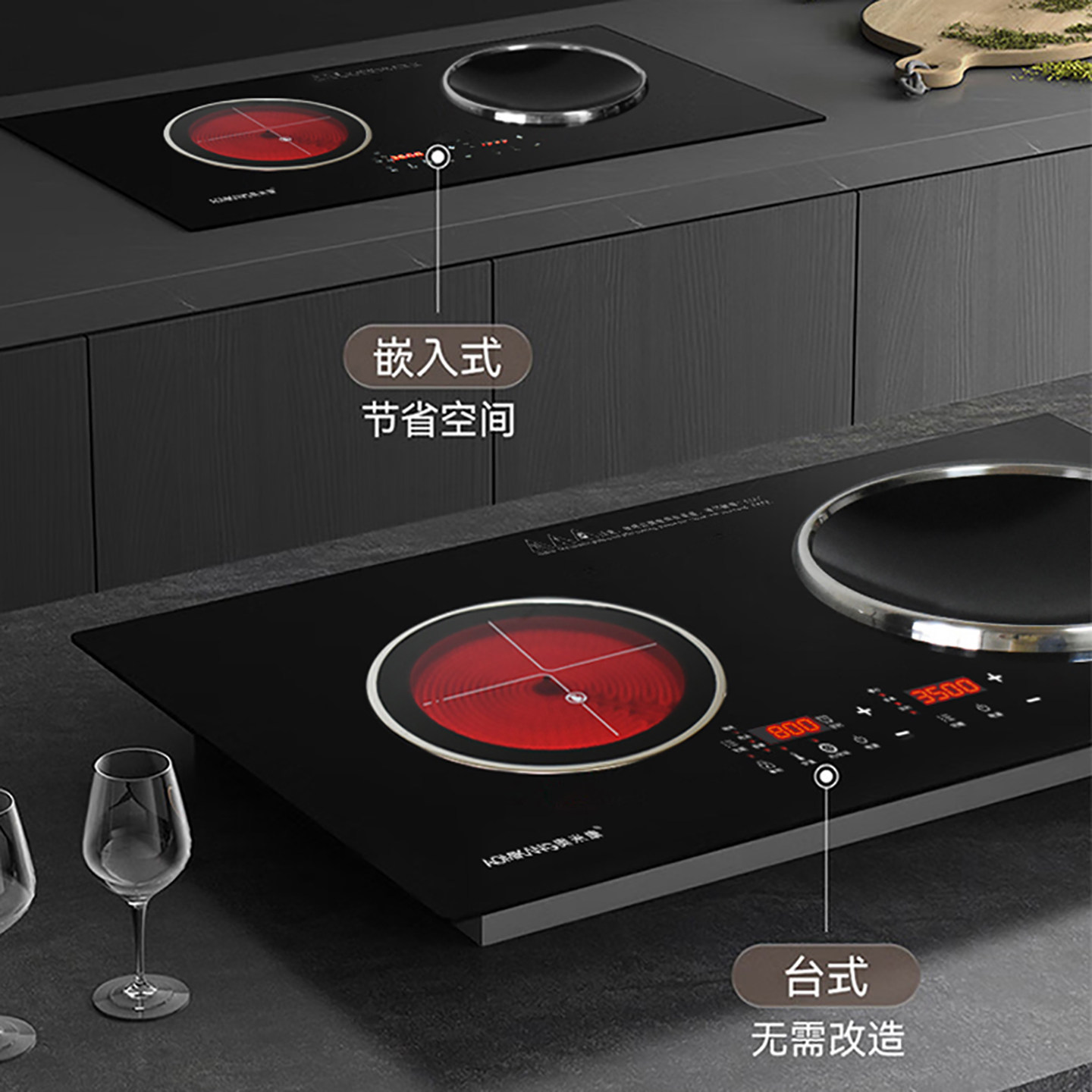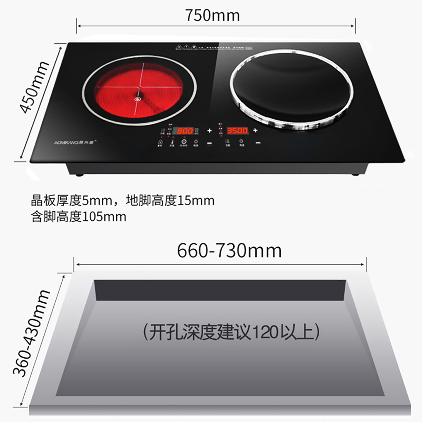 奥米康电磁炉双灶嵌入式家用大功率3500W凹面爆炒镶嵌双头电陶炉