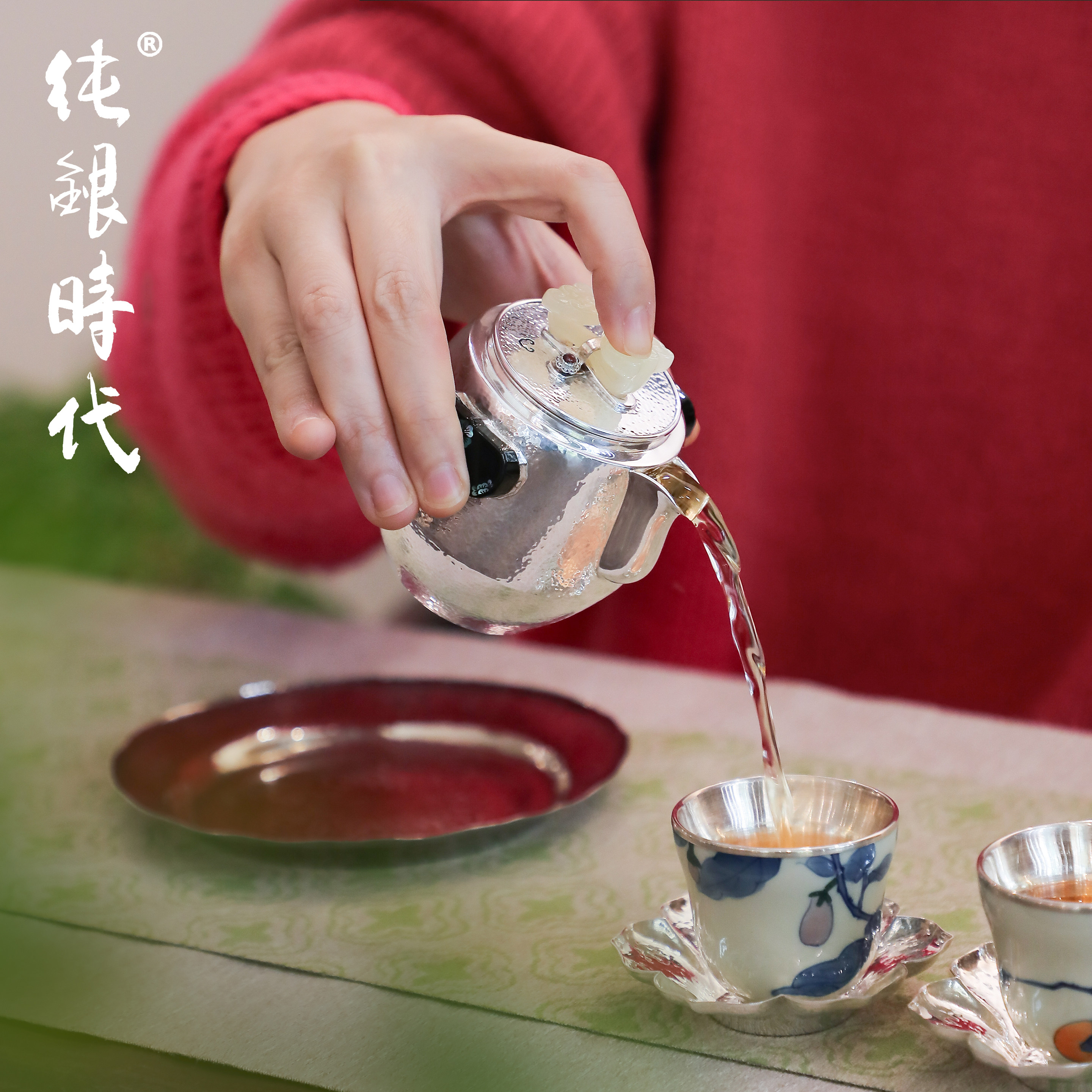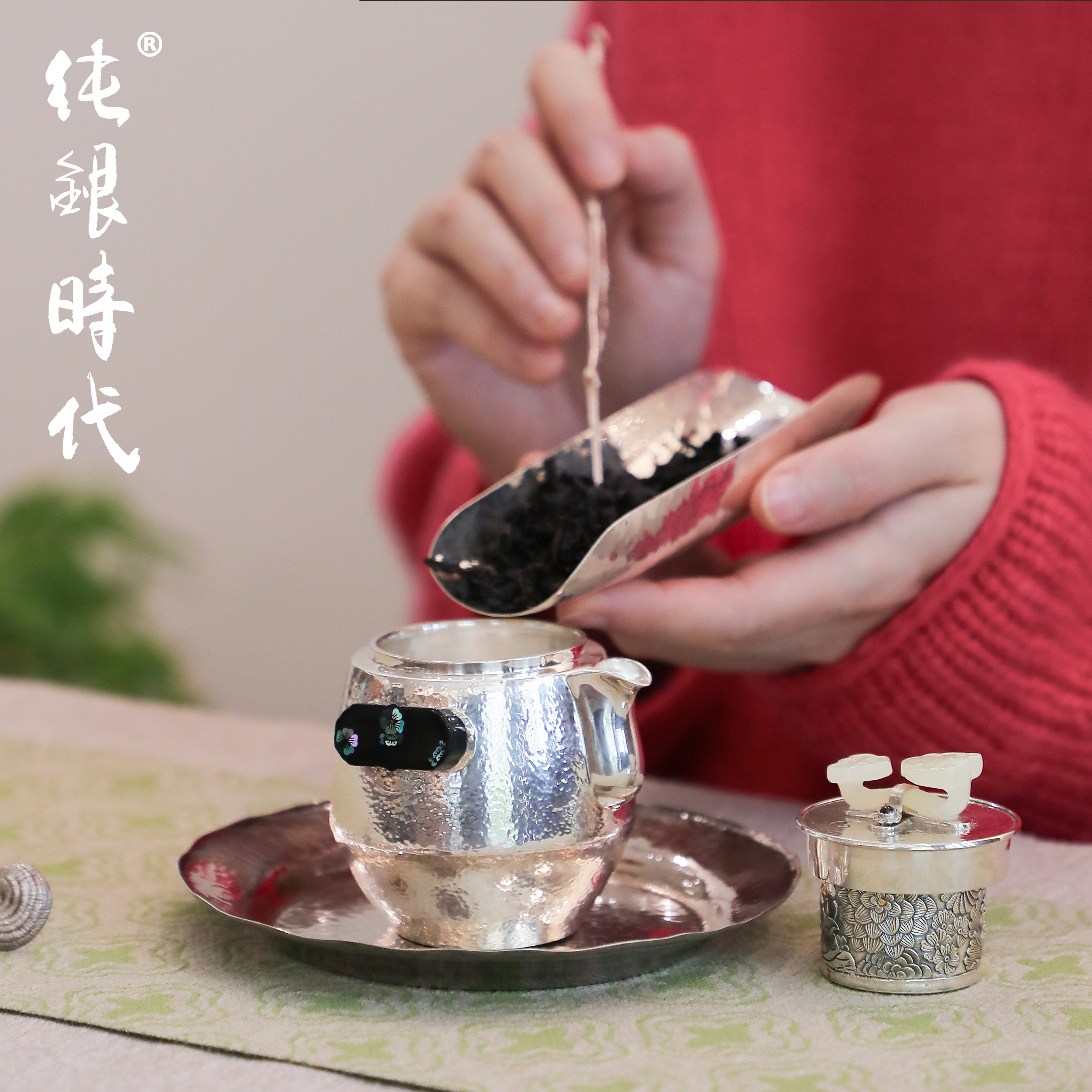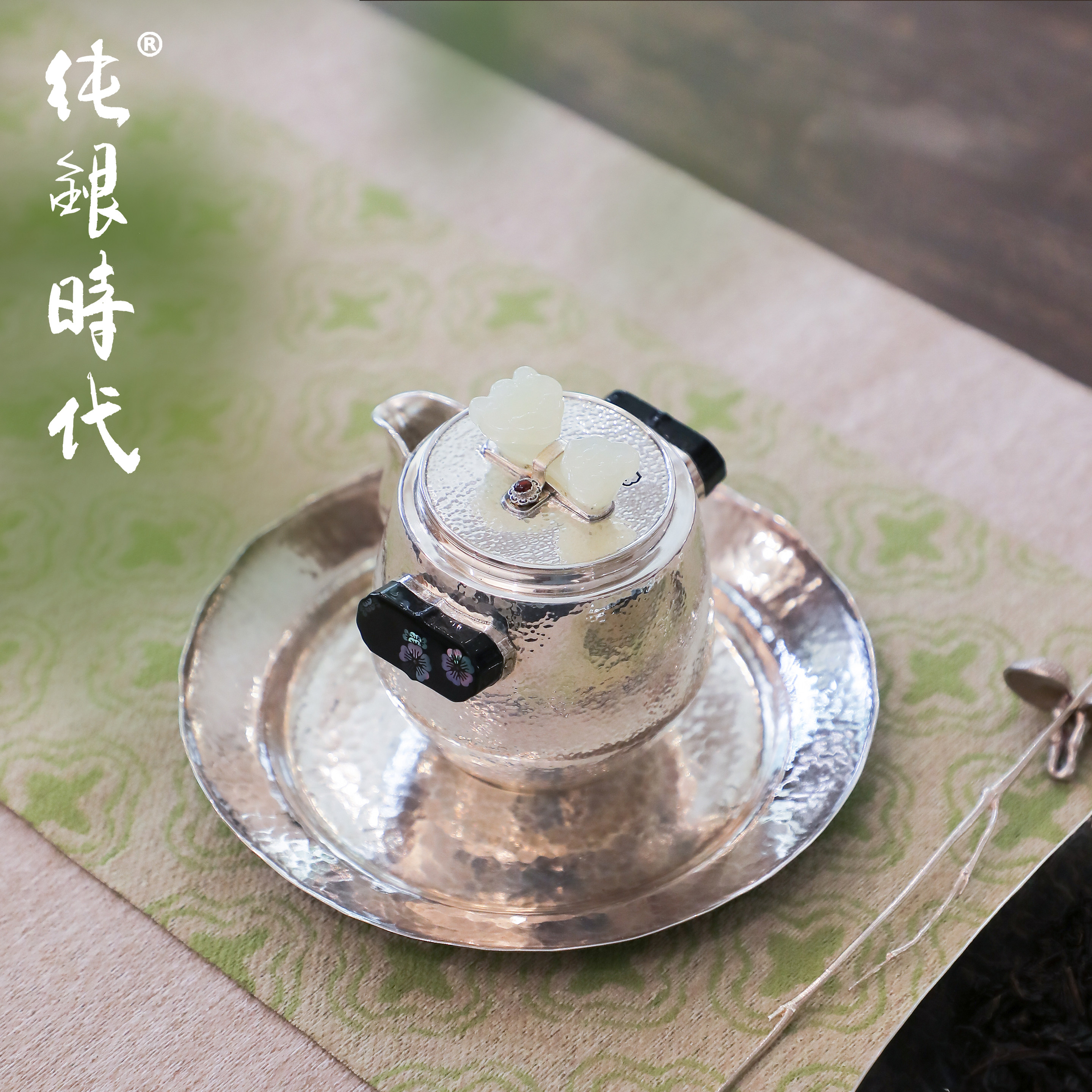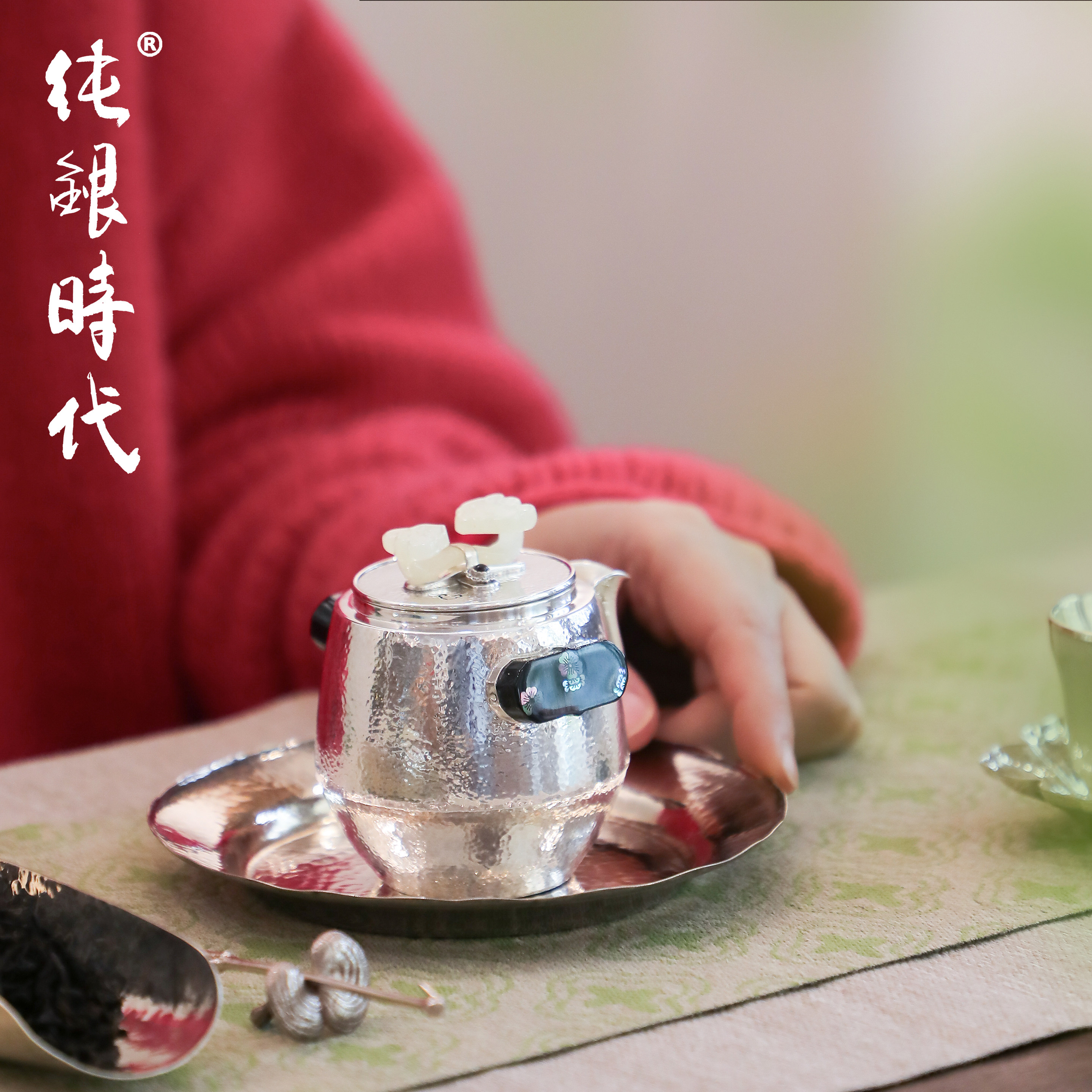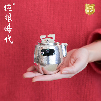 纯银时代 如意泡茶壶纯银999非遗手工杨松柱作银壶大漆螺钿160ml