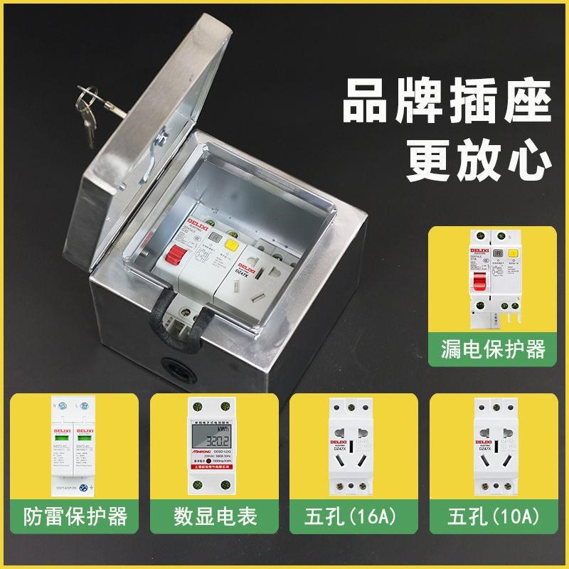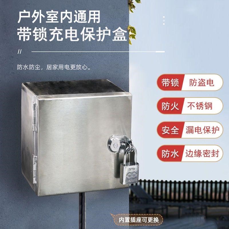 不锈钢带锁户外防水插座室外防雨新能源电动车充电插座配电箱