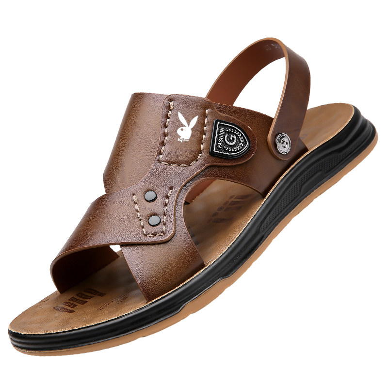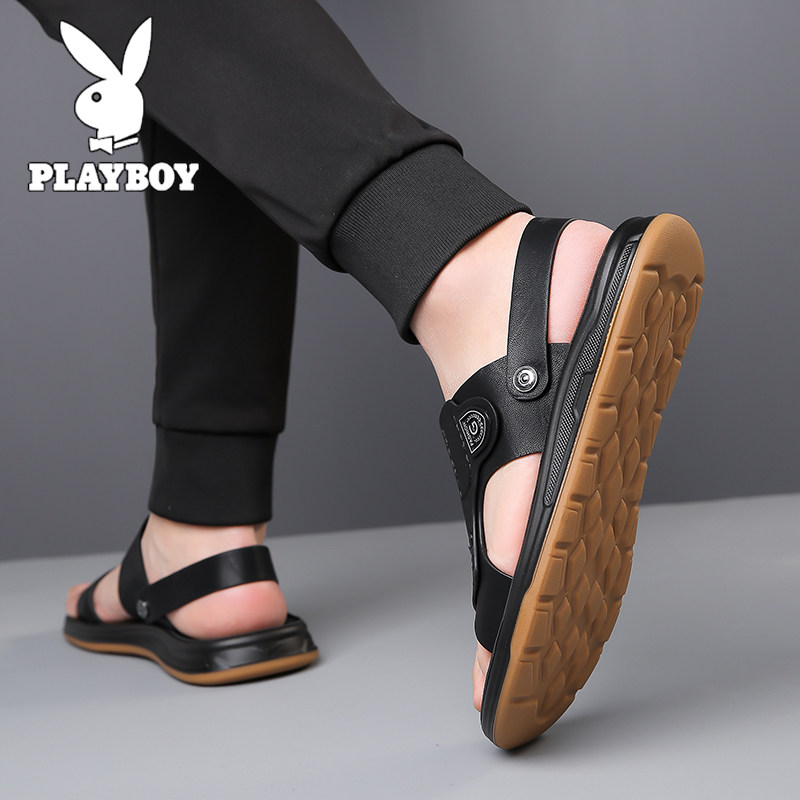 花花公子凉鞋男款2025夏季真皮休闲透气沙滩鞋男士软底防滑凉拖鞋