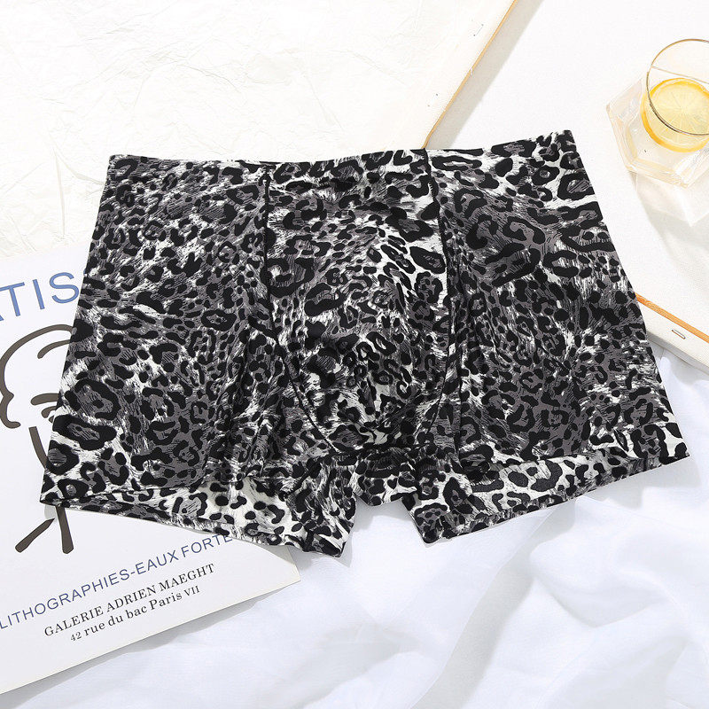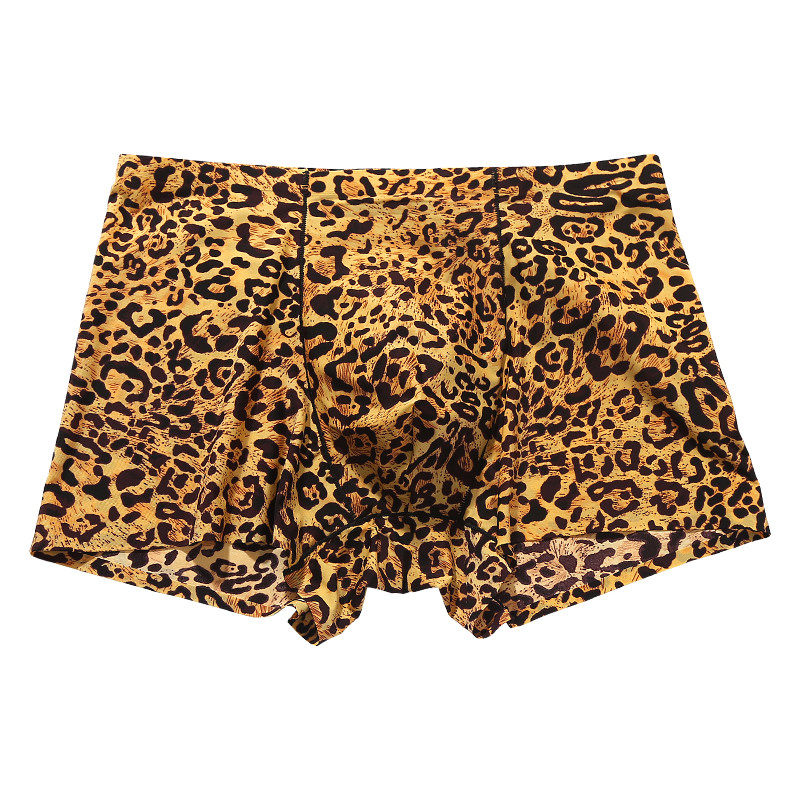 男士内裤冰丝豹纹性感档男款男生平角2024新款夏季短裤四角裤纯棉