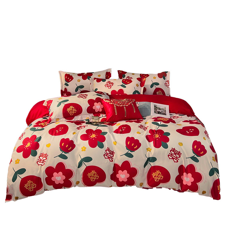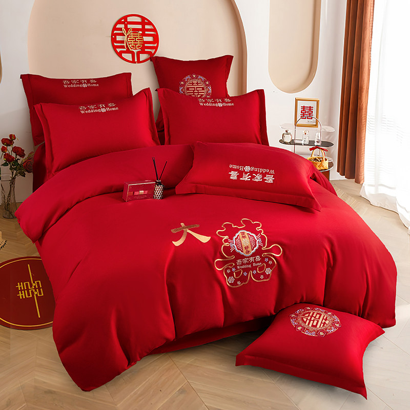 极速新婚庆四件套大红色喜被套床单结婚房嫁礼简约W喜庆床上用品