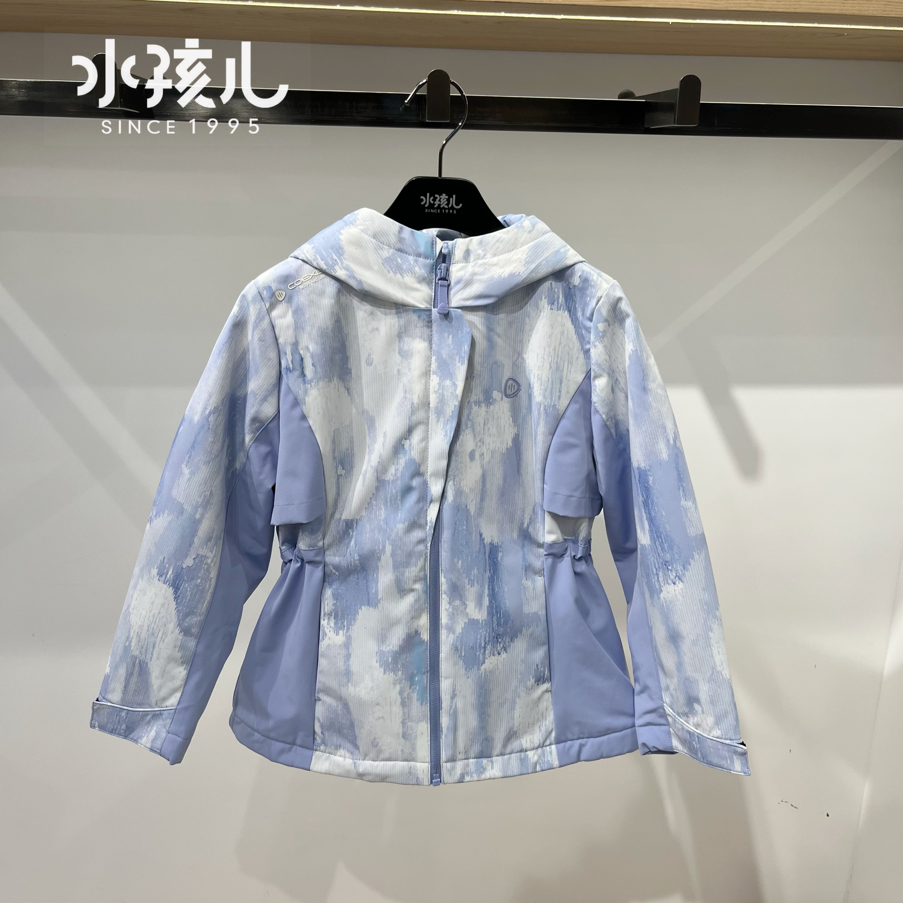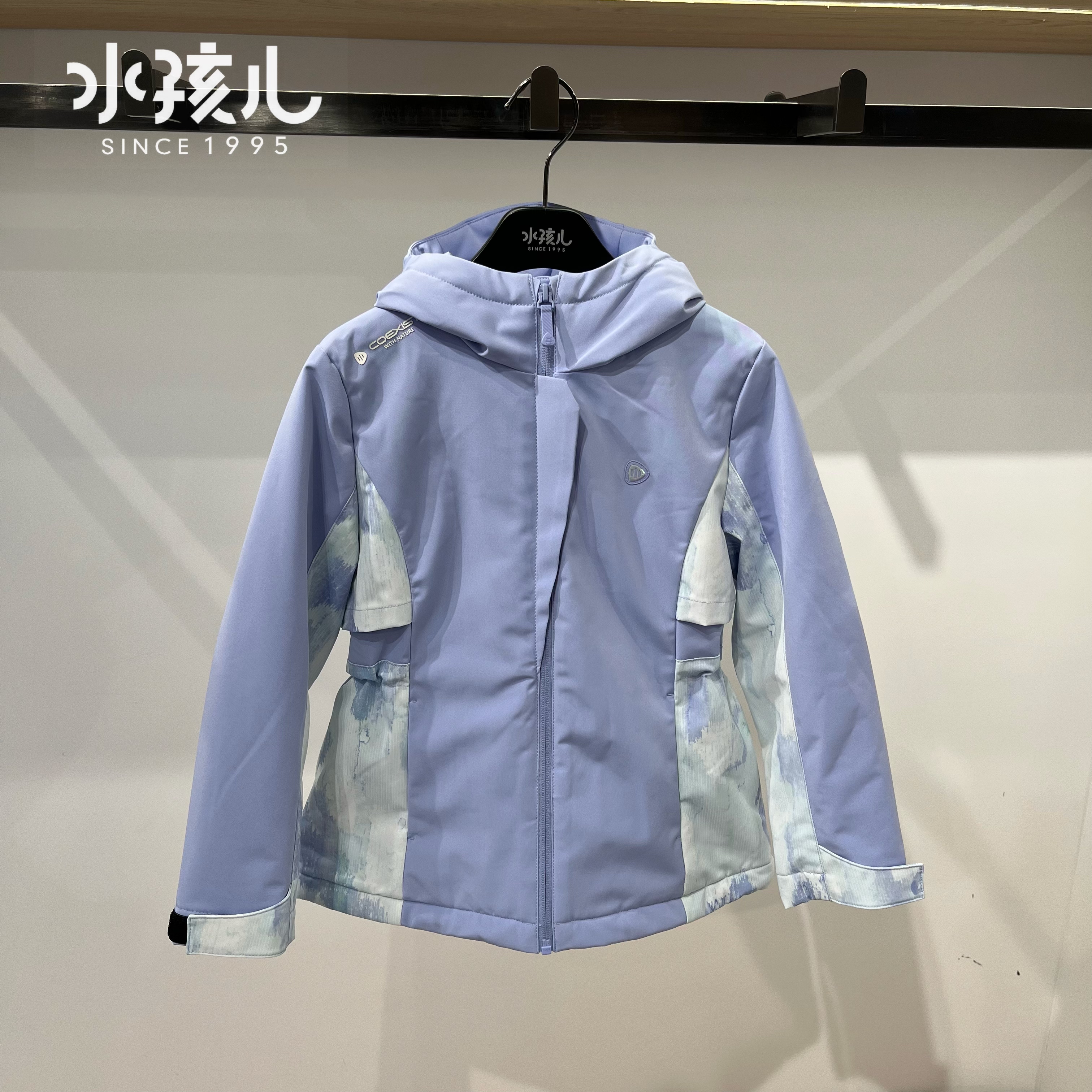 商场同款水孩儿童装女童加绒冲锋衣2025新款厚风衣时尚保暖厚外套