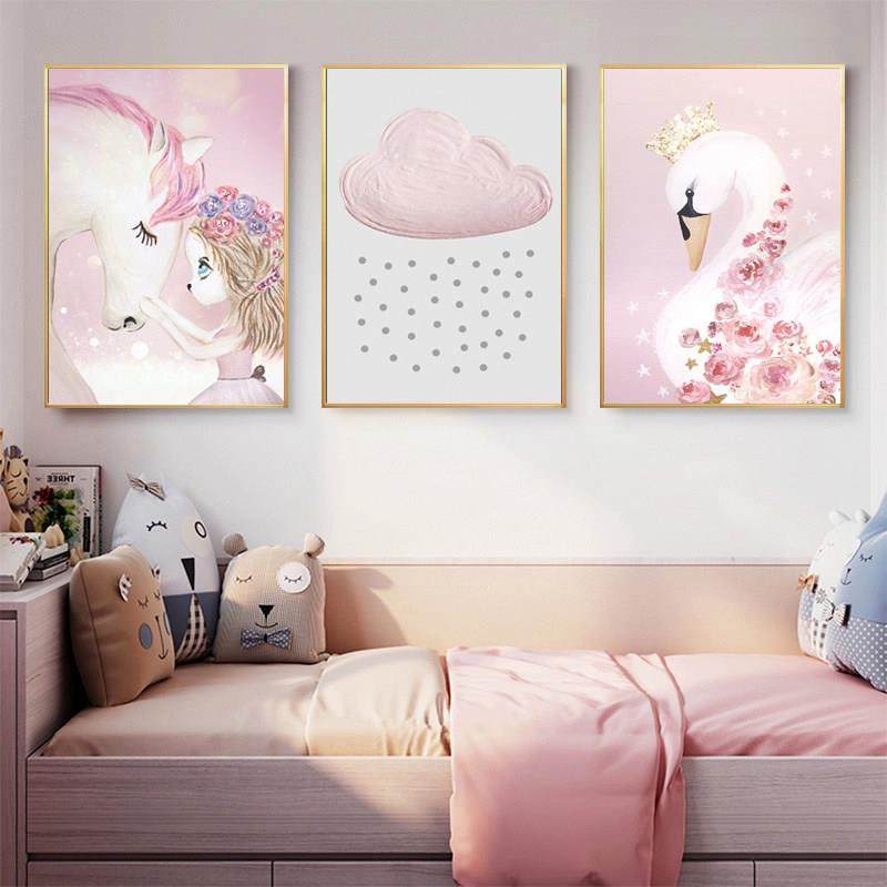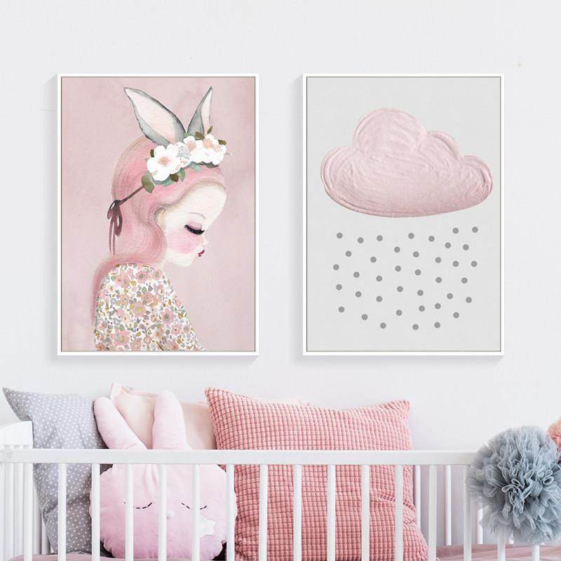 儿童房装饰画卧室墙面卡通女孩房间挂画小朋友孩子粉红色少女壁画