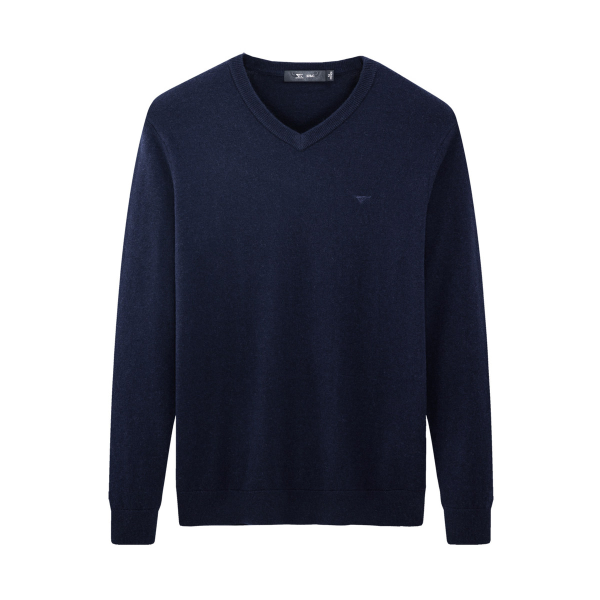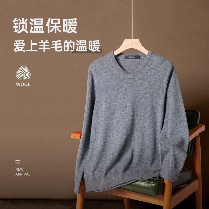 七匹狼毛衣男士2025新款秋冬季黑色V领打底针织纯羊毛衫男装