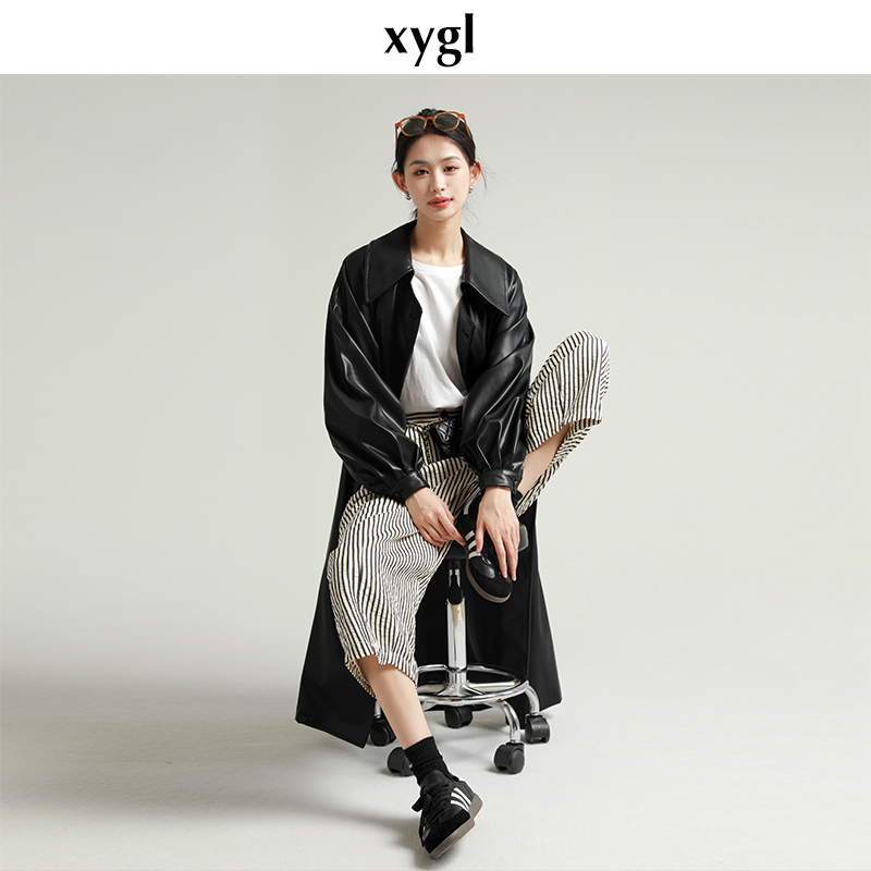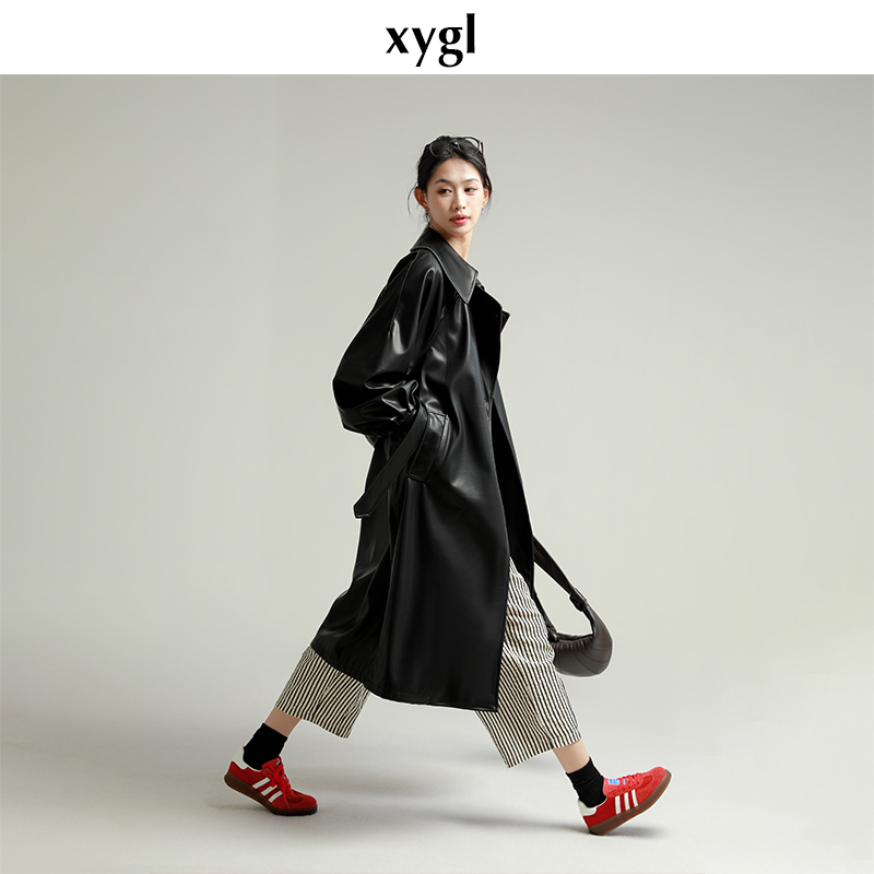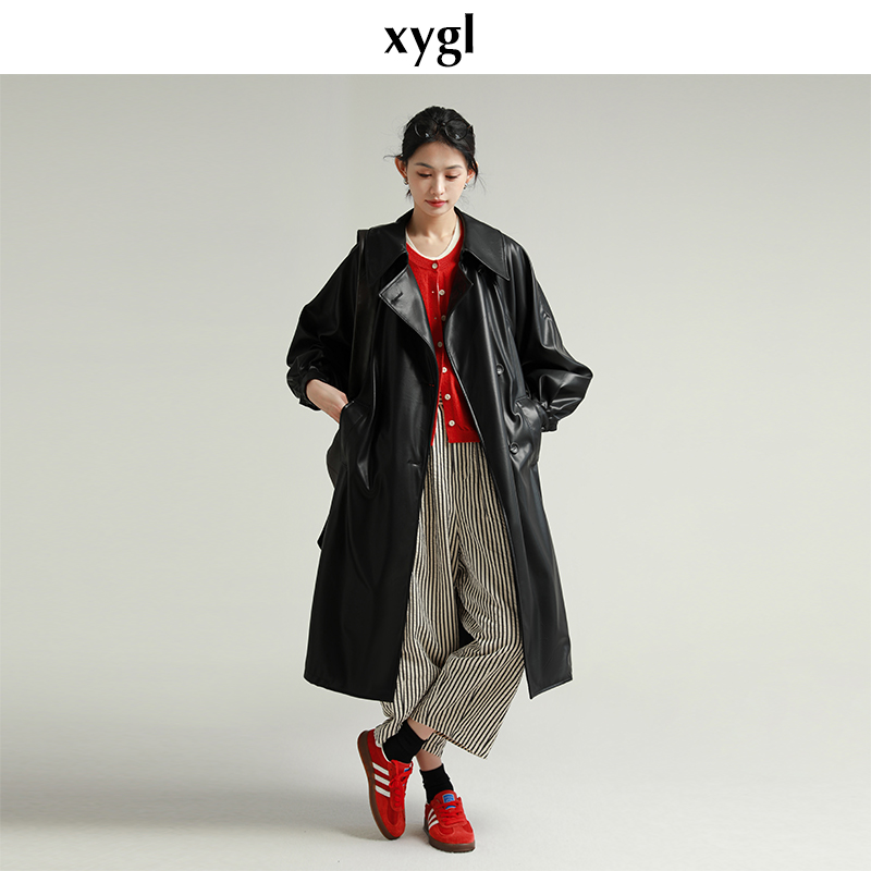 稀有概率 原创设计软糯黑色pu皮风衣女秋季复古酷飒中长款外套