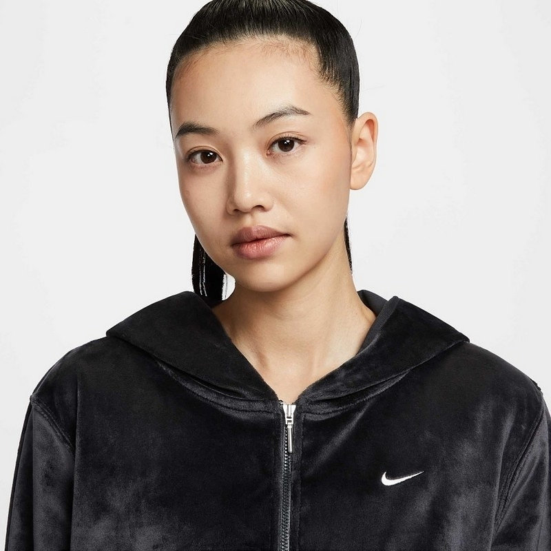 NIKE耐克外套女子秋冬季运动休闲刺绣小勾丝绒连帽夹克HJ0958-010