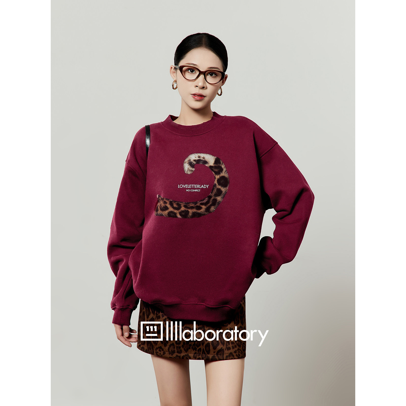 周里物出品「脉野生息」安哥拉红加绒卫衣女2026春季新款圆领上衣