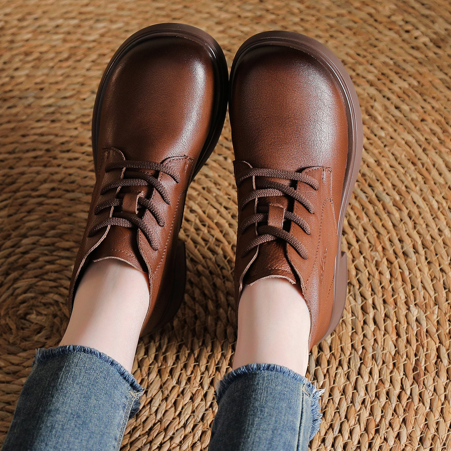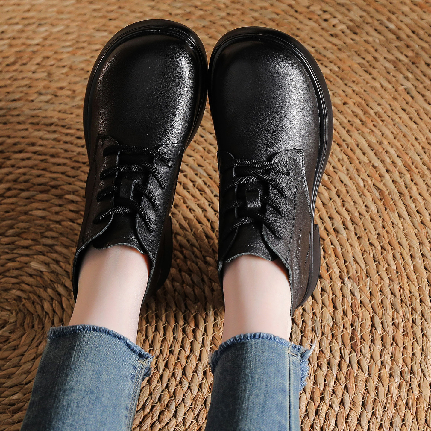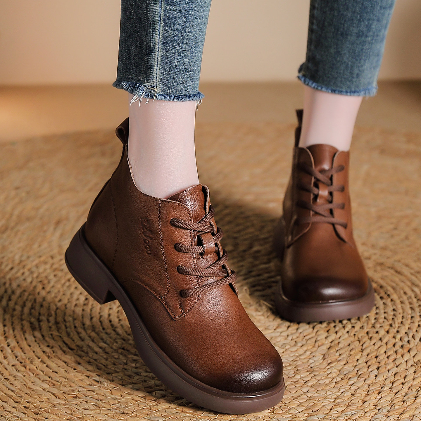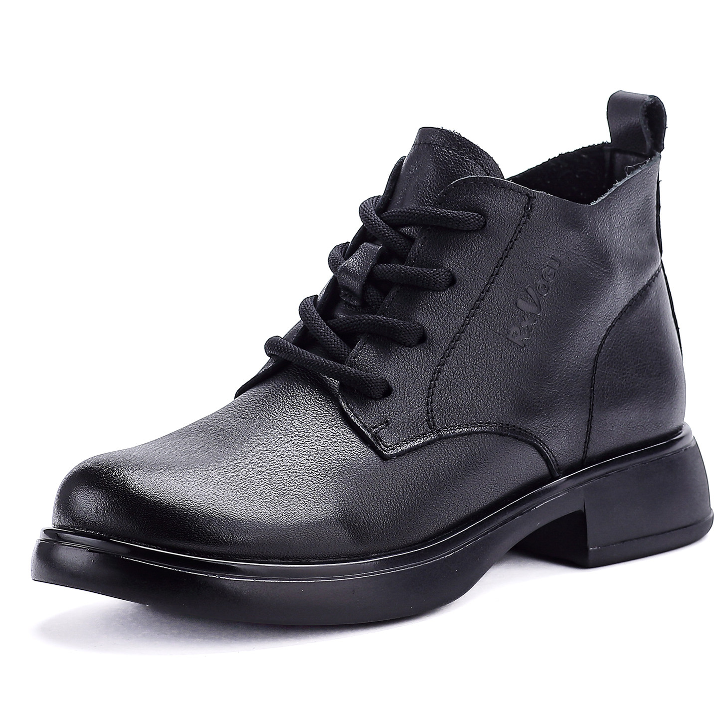 纯牛皮2025秋季新款单靴女靴英伦风皮靴黑色马丁靴真皮中跟小短靴