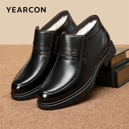 意尔康男士皮鞋2025冬季新款真皮加绒保暖中老年商务爸爸鞋棉鞋