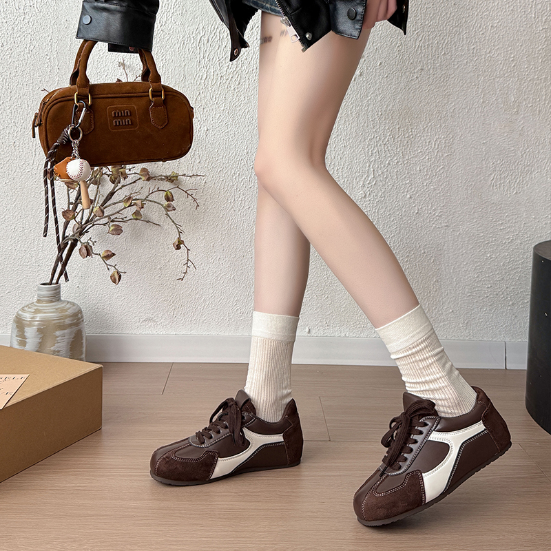 小个子拼色内增高德训鞋女2025秋