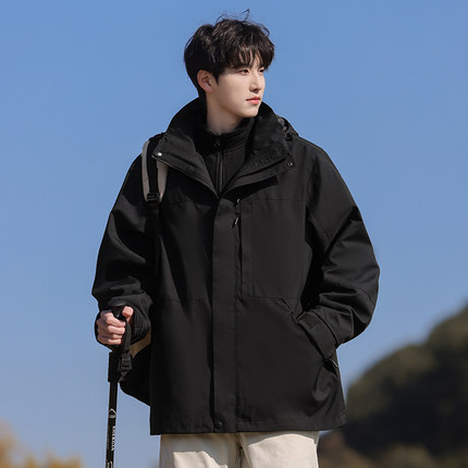 三合一冲锋衣男春季2026新款户外防风登山连帽秋冬季男士工装外套