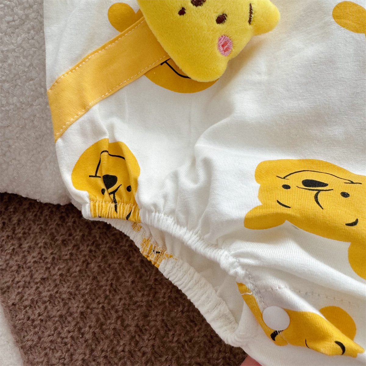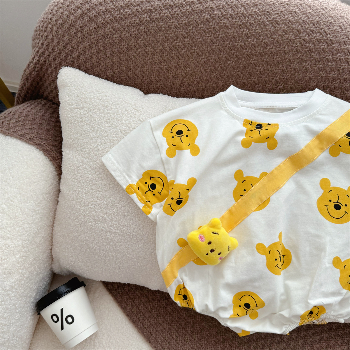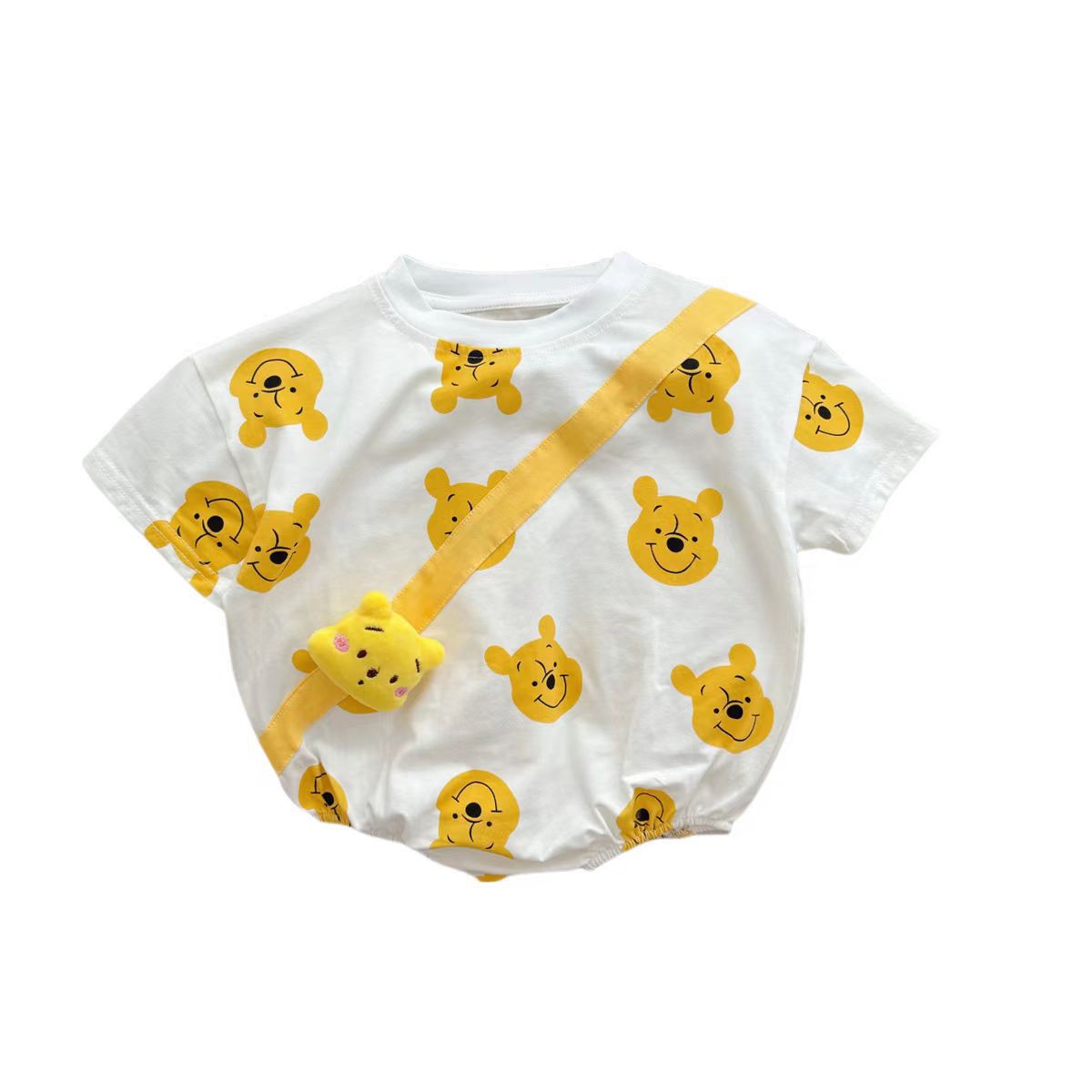婴儿夏装薄款纯棉包屁衣可爱卡通维尼熊外出宝宝短袖哈衣爬服套装