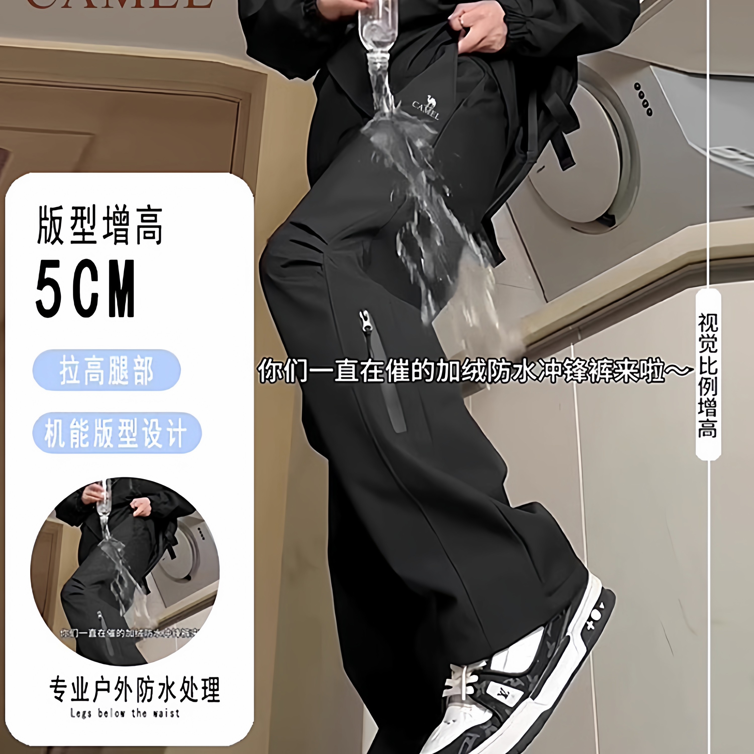骆驼户外宽松防水登山冲锋裤男款