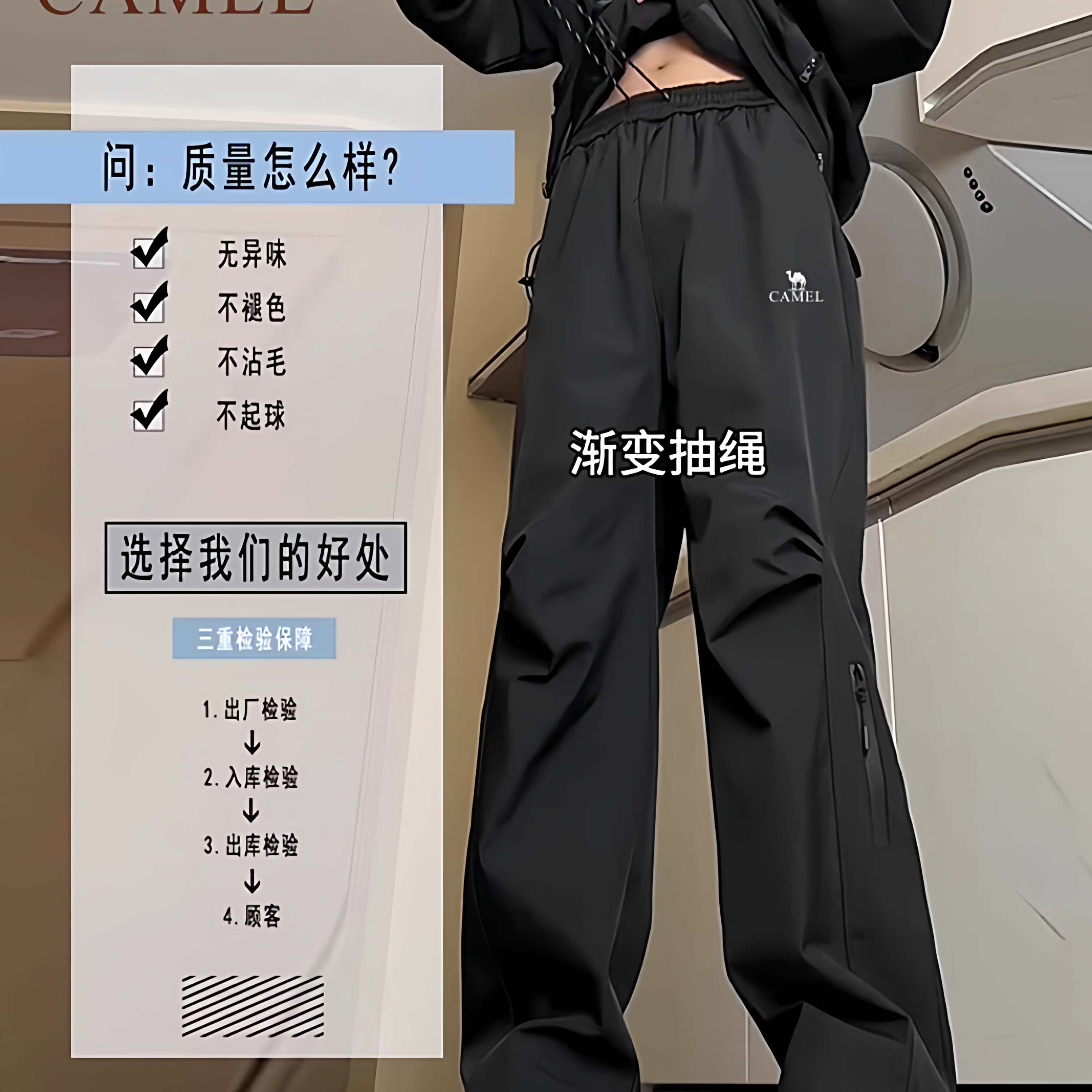骆驼冲锋裤男2025新款秋冬季男宽松工装户外登山运动休闲黑色裤子