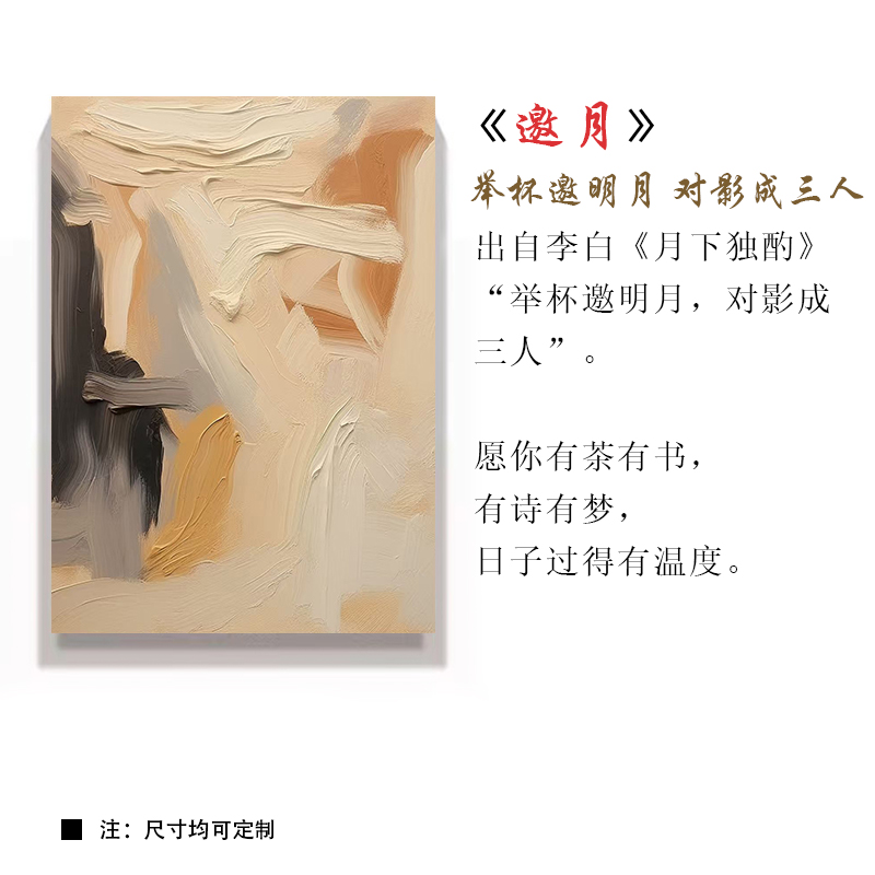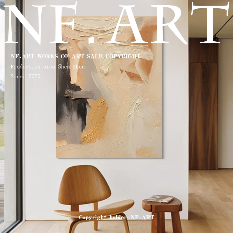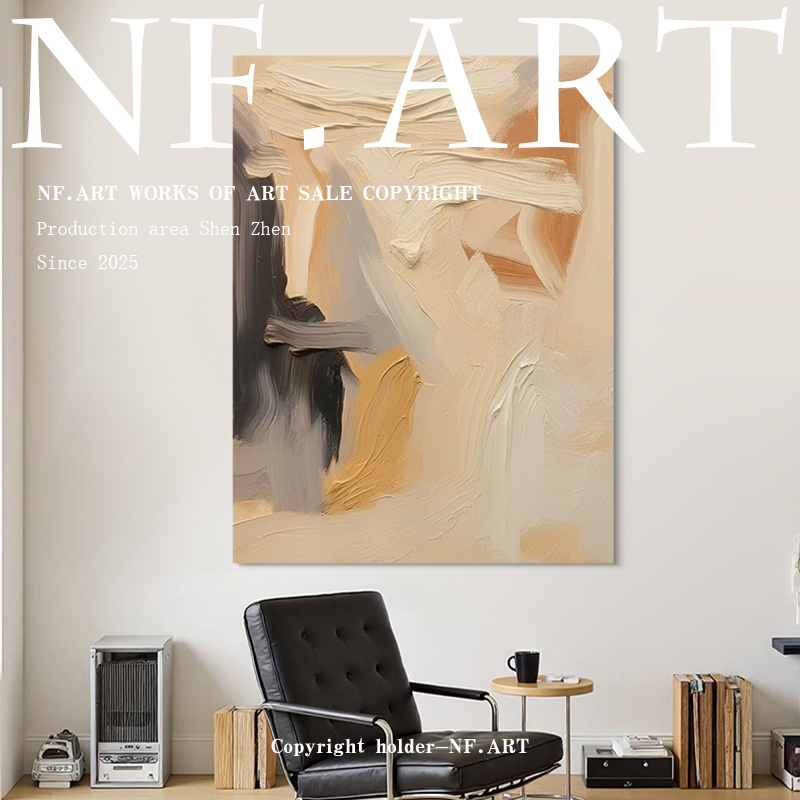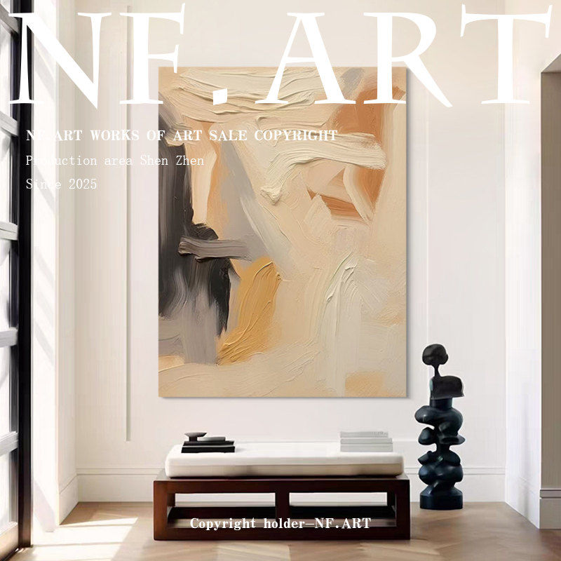 NF.ART原创手绘《邀月》侘寂风客厅抽象艺术油画玄关背景墙装饰画