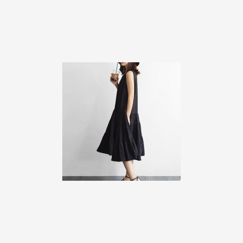 速卖通夏无袖森女文艺长款蛋糕裙亚麻棉麻连衣裙打底吊带背心长裙