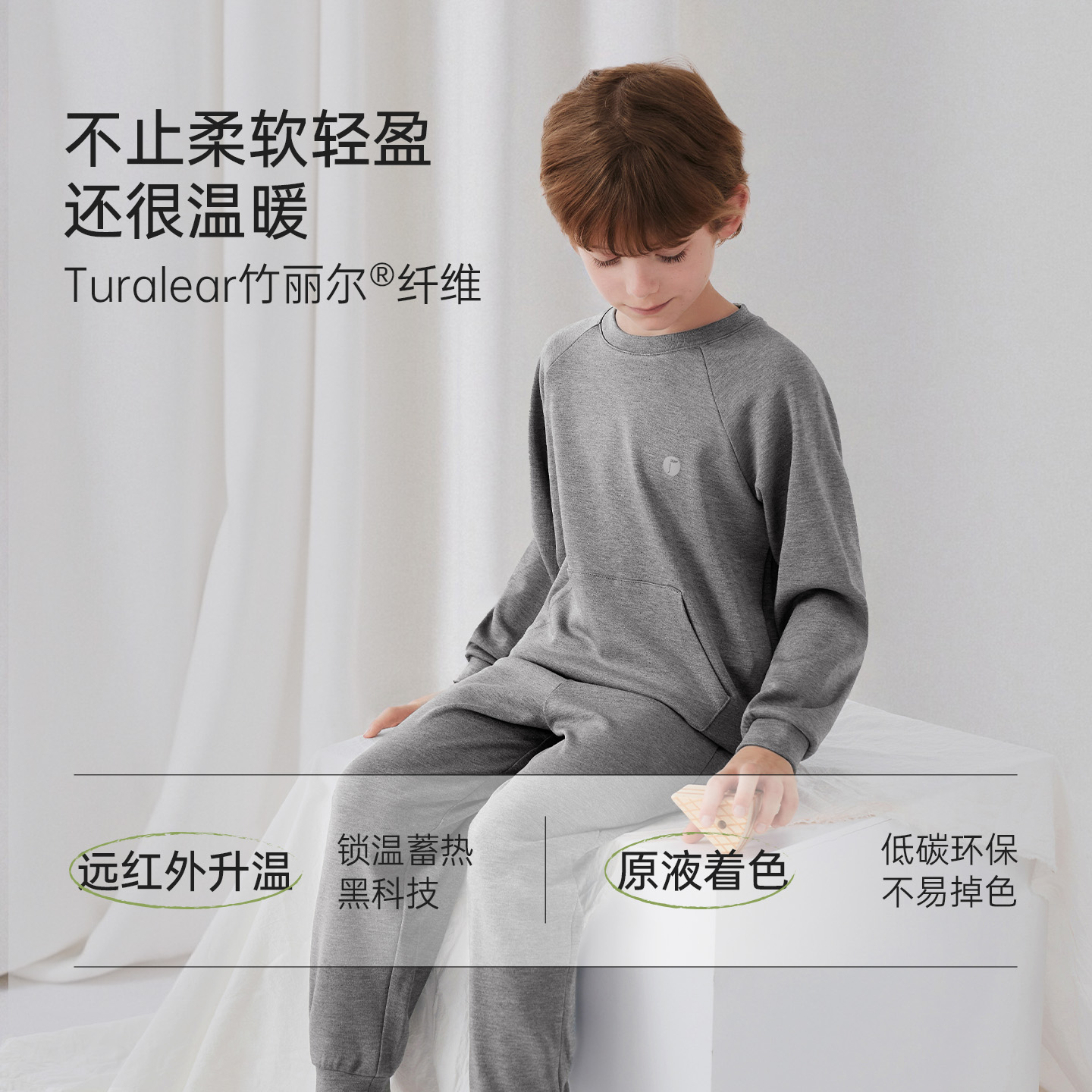 junejunior儿童卫衣卫裤春秋款男女童竹丽尔透气排汗长袖裤子套装