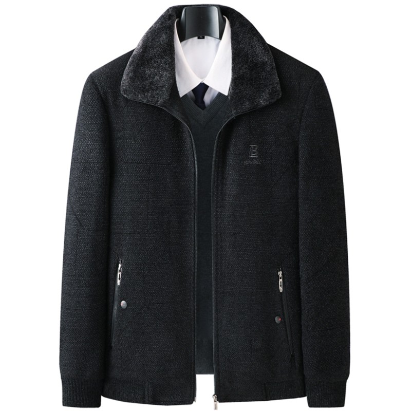 爸爸秋冬装加绒加厚款雪尼尔外套中老年男士夹克衫中年人男装棉衣