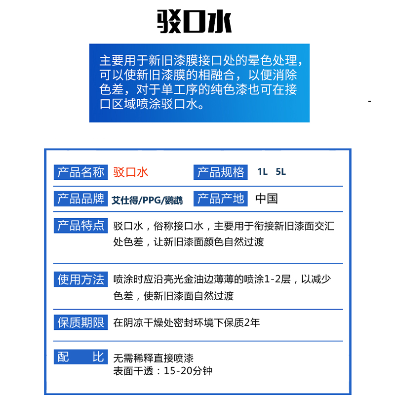 鹦鹉352-450接口水汽车光油PPG TJ209接口清漆艾仕得AK350C驳口水