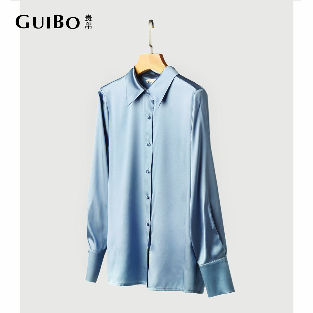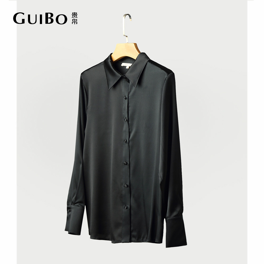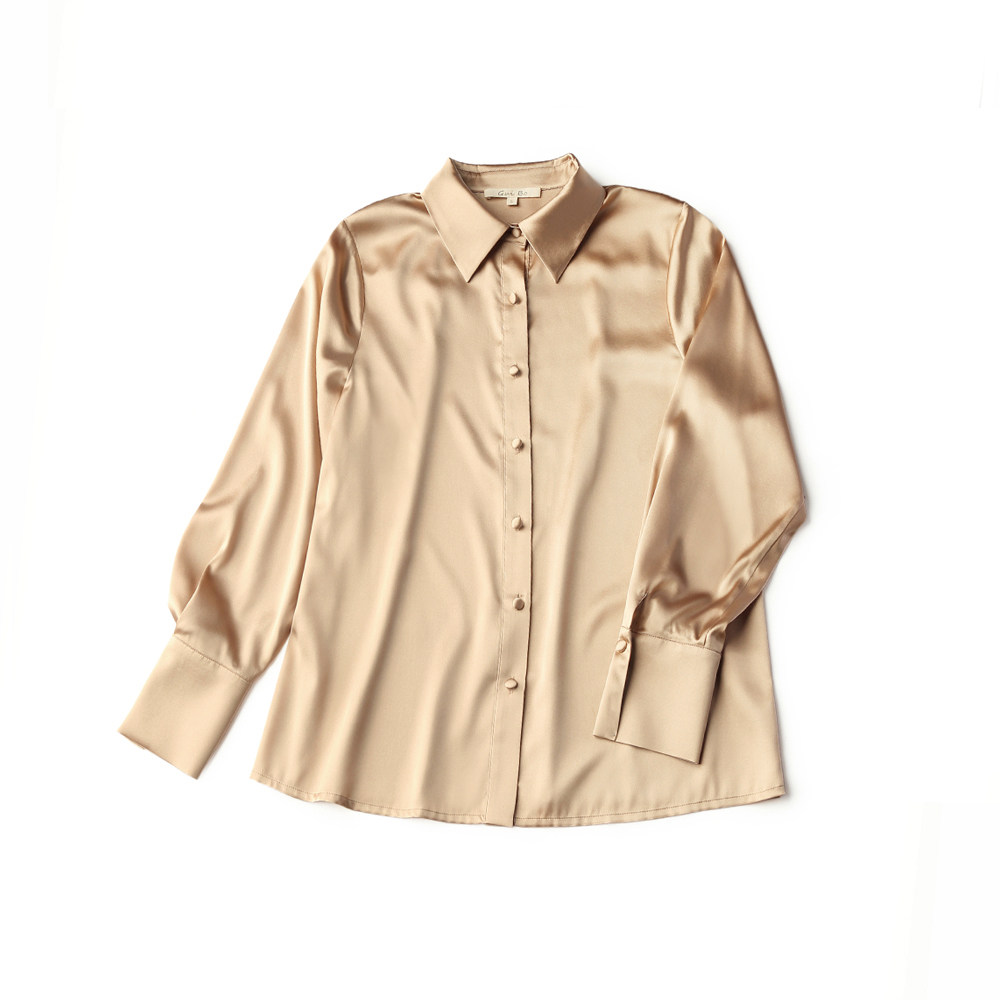 重磅真丝衬衫女休闲桑蚕丝长袖衬衣宽松秋高级风内搭大码缎面上衣