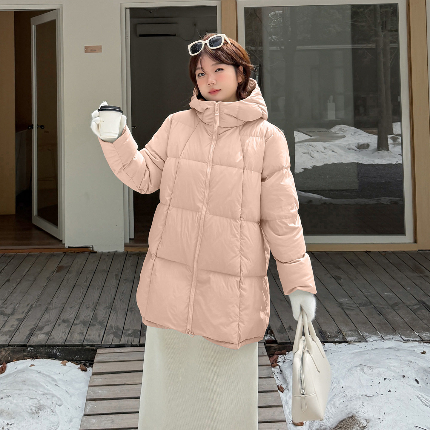 小波家2026冬季胖mm保暖百搭白鸭绒羽绒服连帽外套