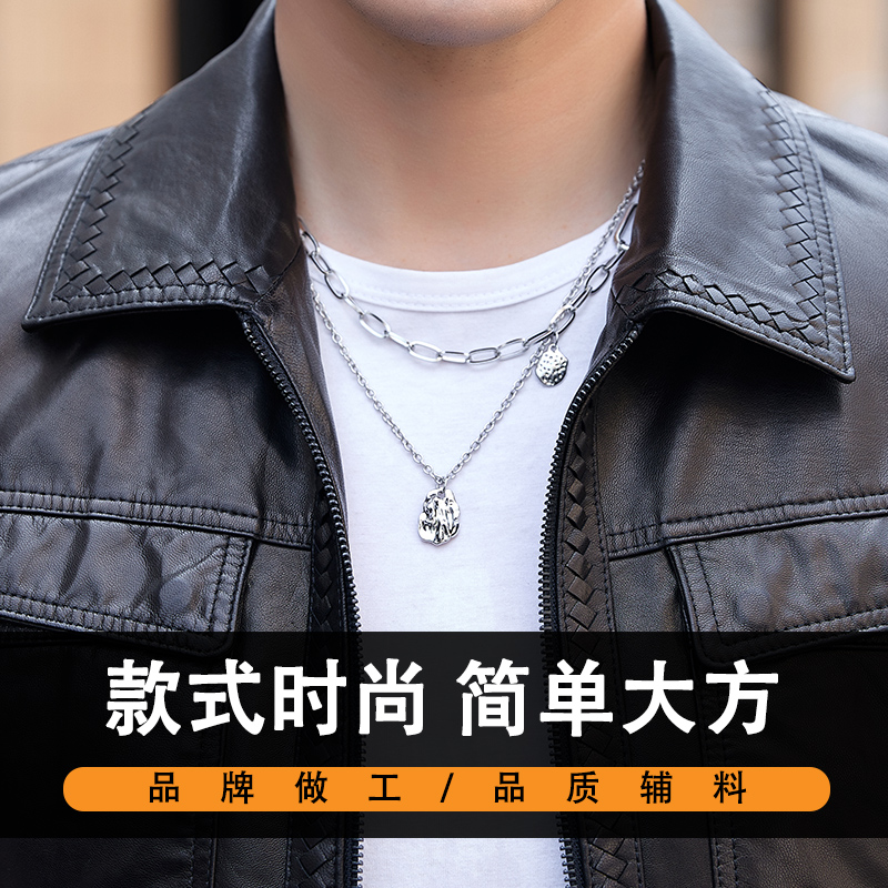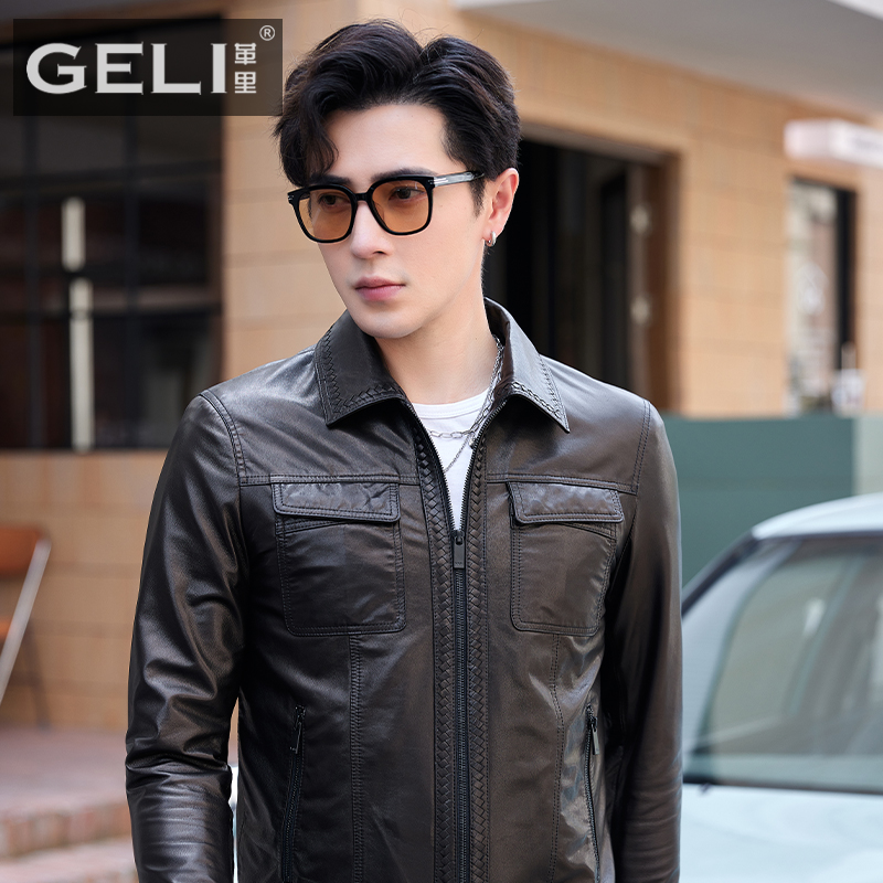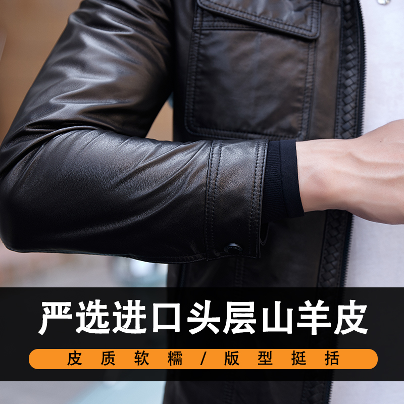 男士新款真皮皮衣头层山羊皮夹克短款翻领编织工艺修身时尚外套潮