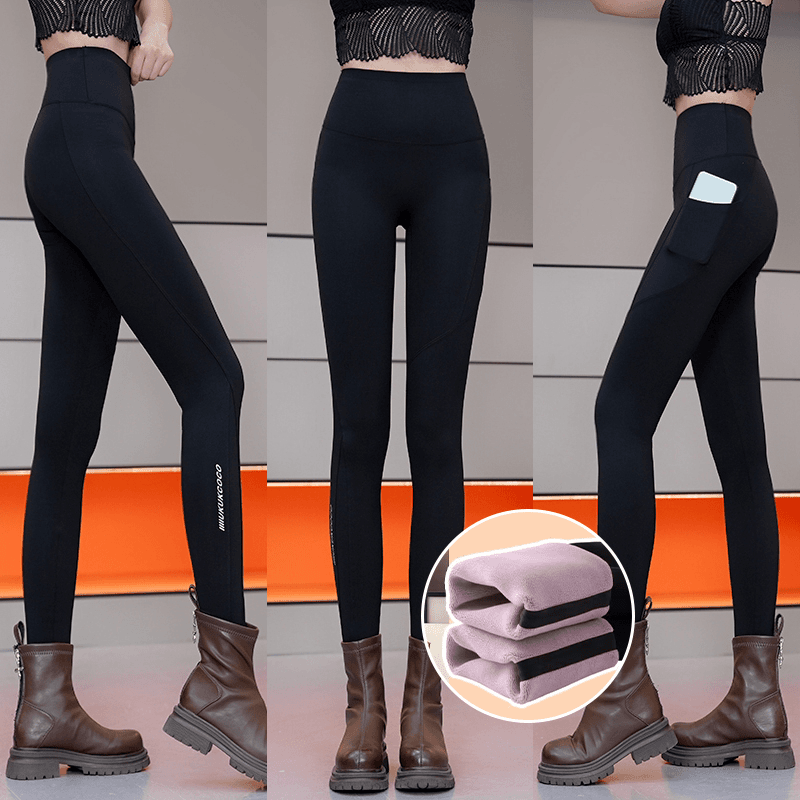 加绒鲨鱼裤女秋冬新款高腰弹力字母小脚裤显瘦百搭口袋瑜伽裤子