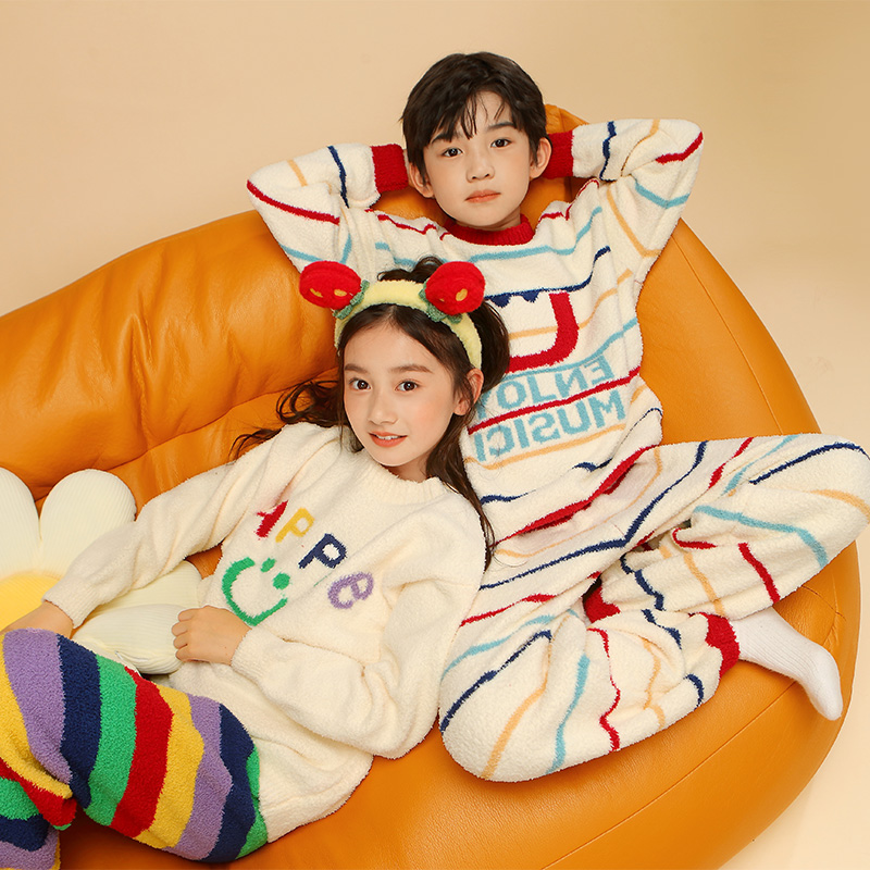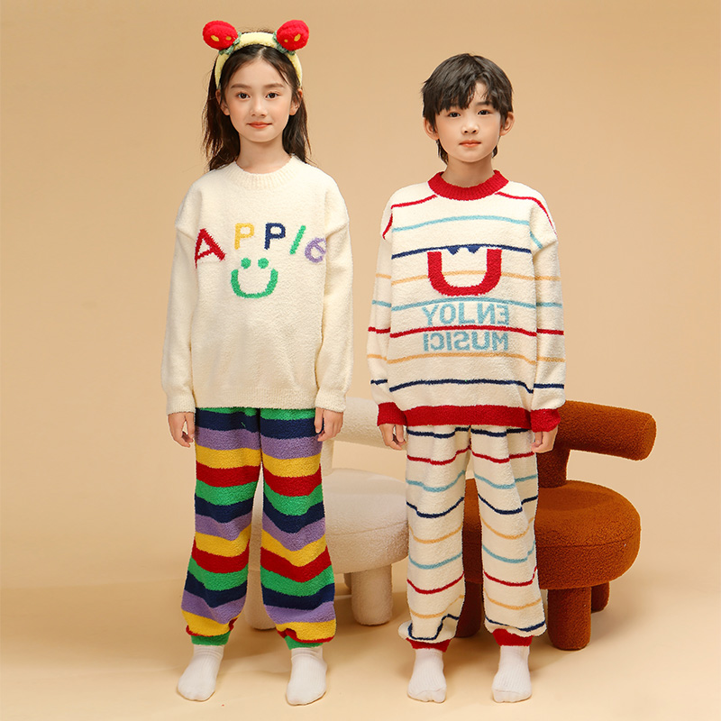 半边绒儿童睡衣套装秋冬亲子男女童宝宝珊瑚绒家居服法兰绒软绵绵