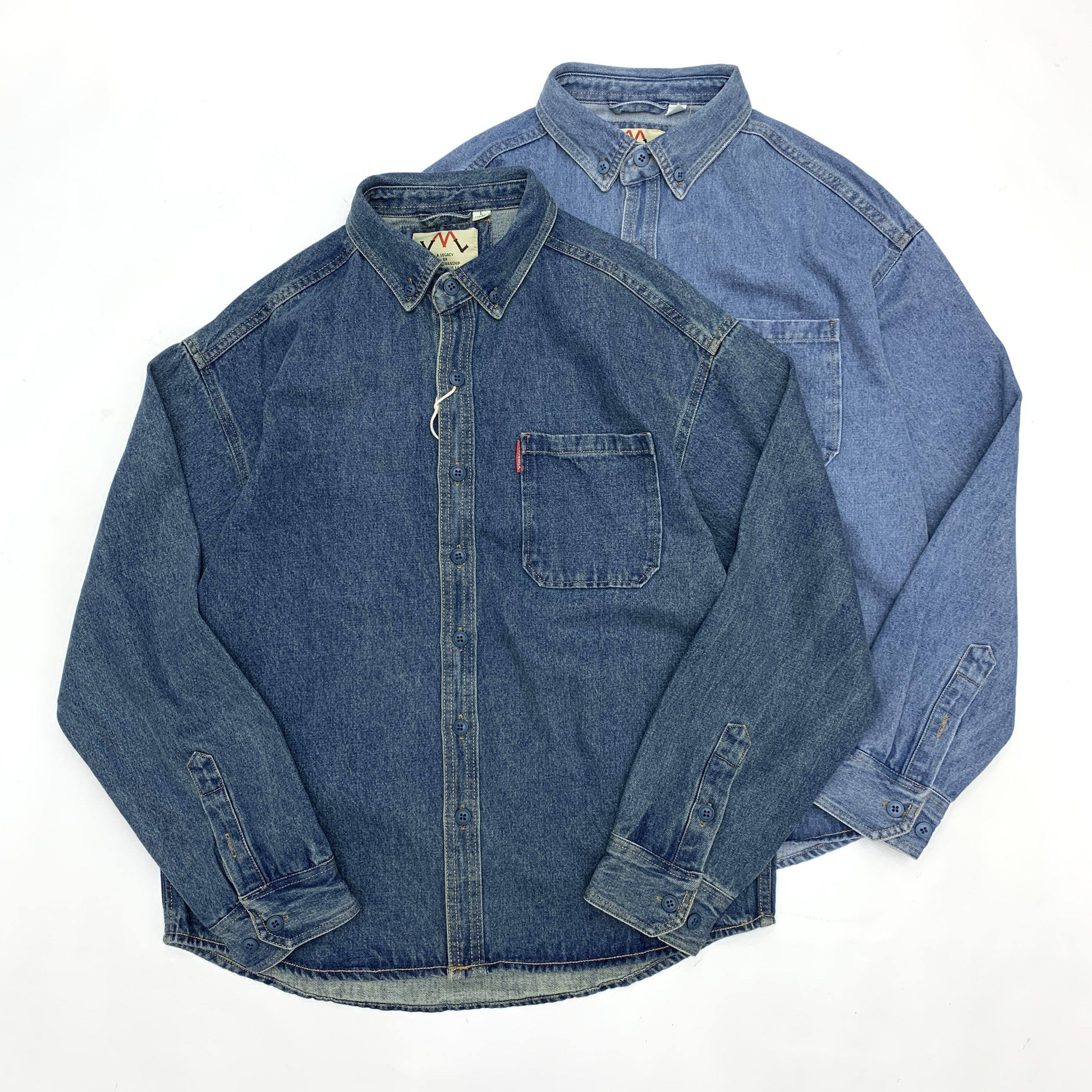 美式做旧水洗牛仔衬衫男厚实宽松阿美咔叽日系复古扣领工装外套女