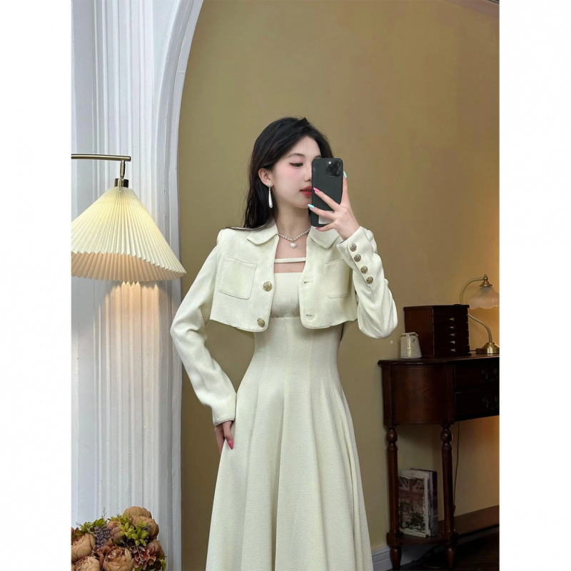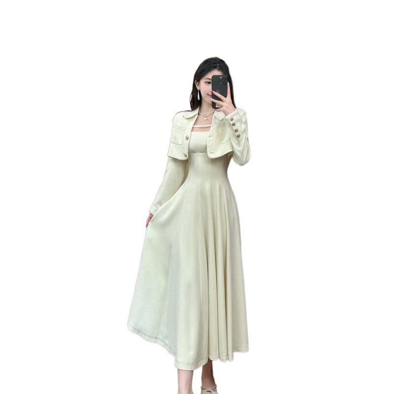 小香风西装外套吊带连衣裙两件套女2025新款早初秋高级感套装长裙