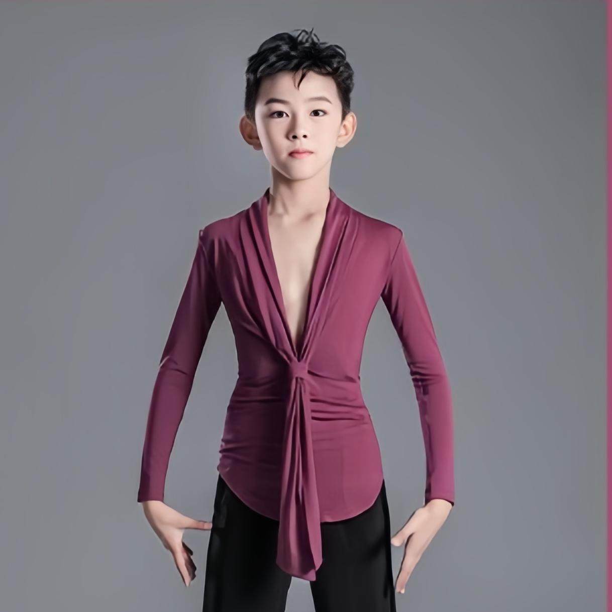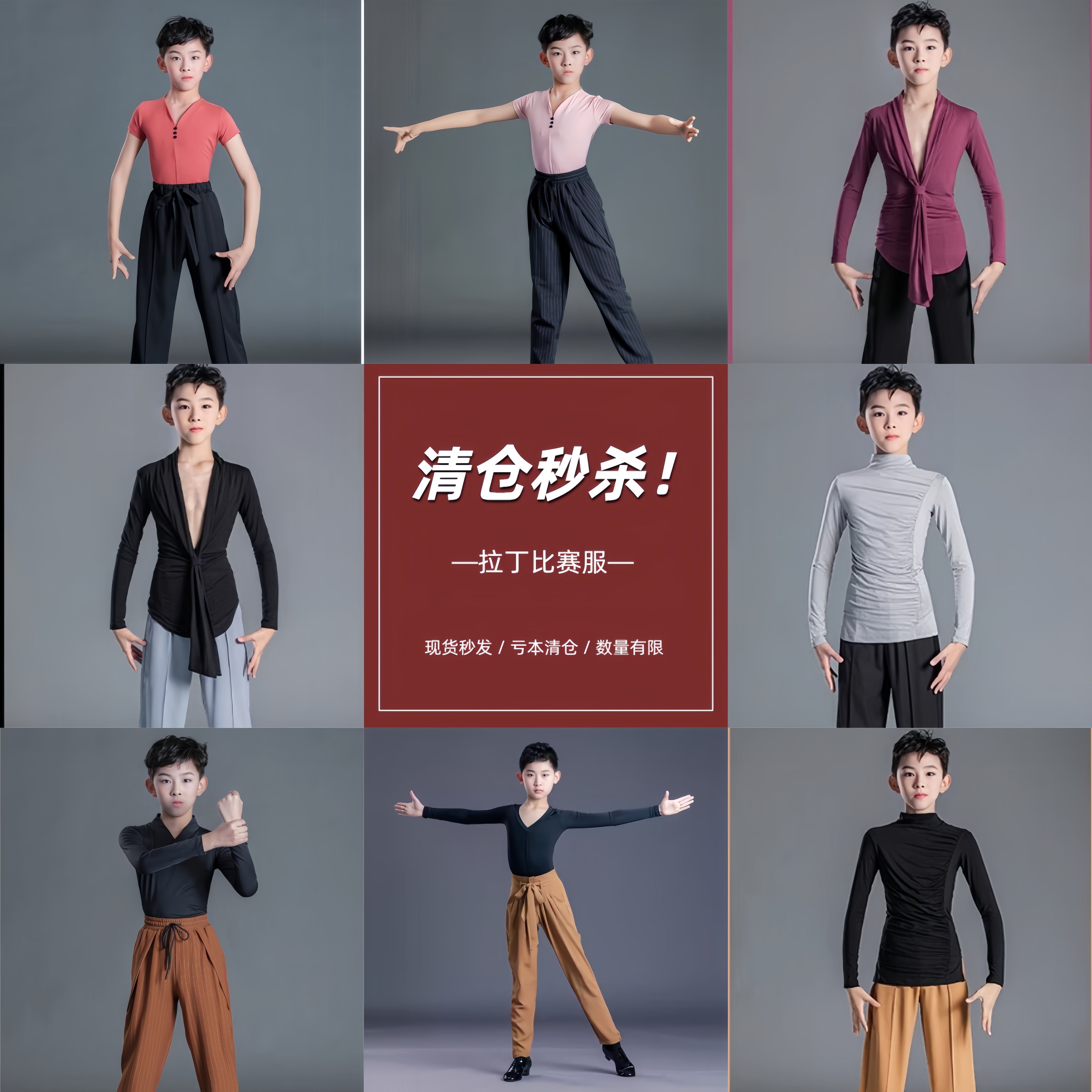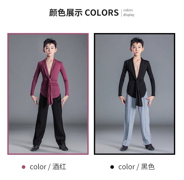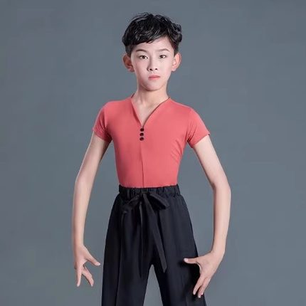 清仓特价男童短袖拉丁上衣舞服显瘦长裤练习舞蹈服男生拉丁表演服