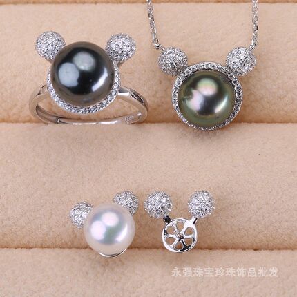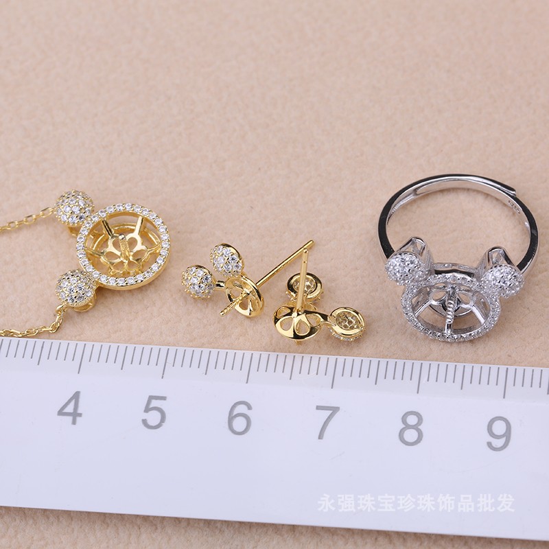 s925纯银三件套配件 diy手工制作珍珠吊坠项坠套链戒指耳钉配件