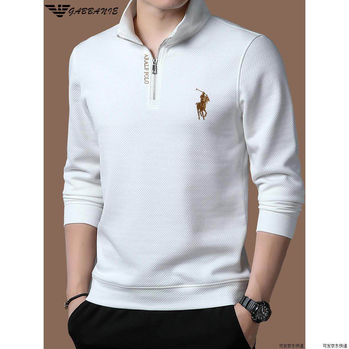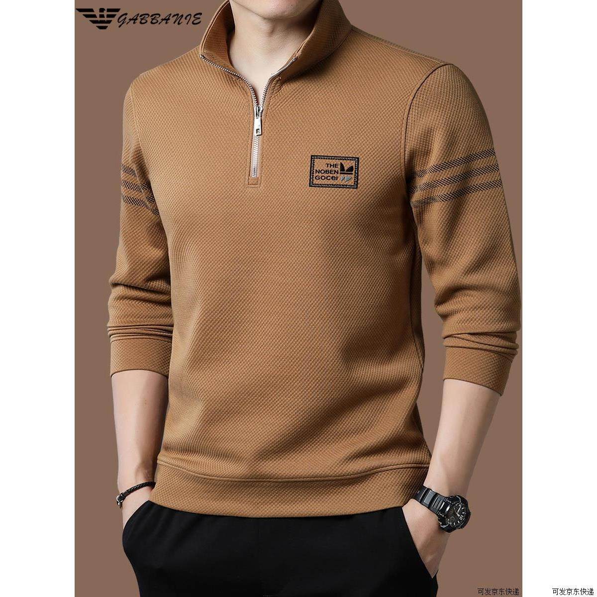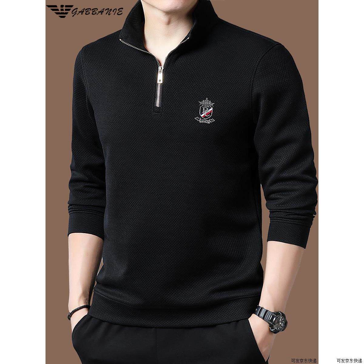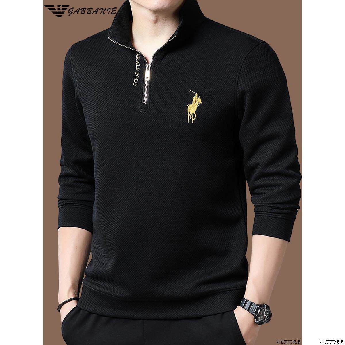 正品高端名牌男士卫衣秋冬季加绒休闲立领半拉链长袖t恤打底衫