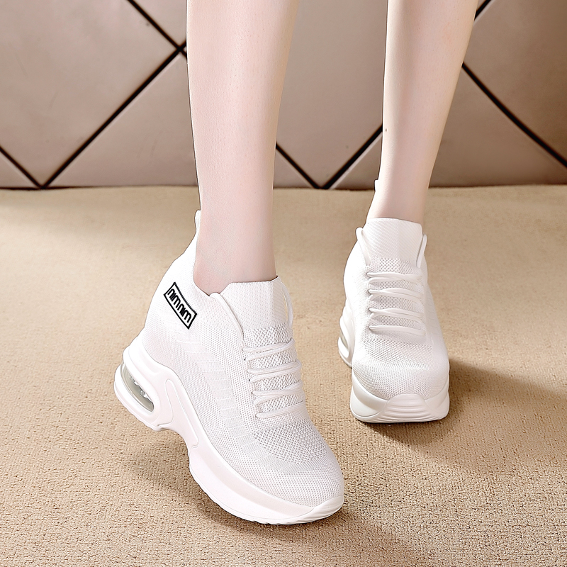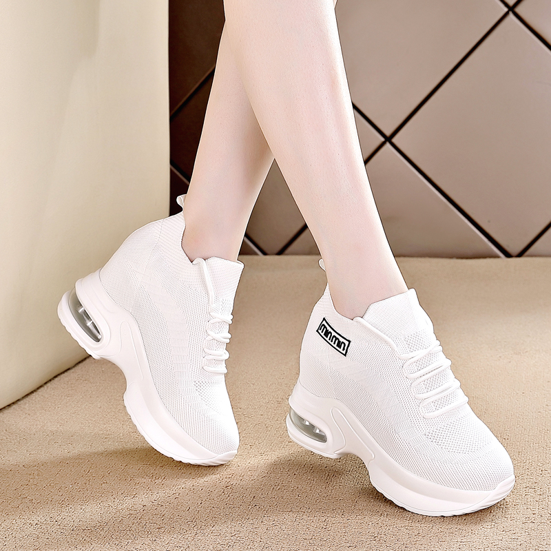 黑色运动鞋女款2025年春季新款胖脚宽脚软底软面舒适内增高女鞋子