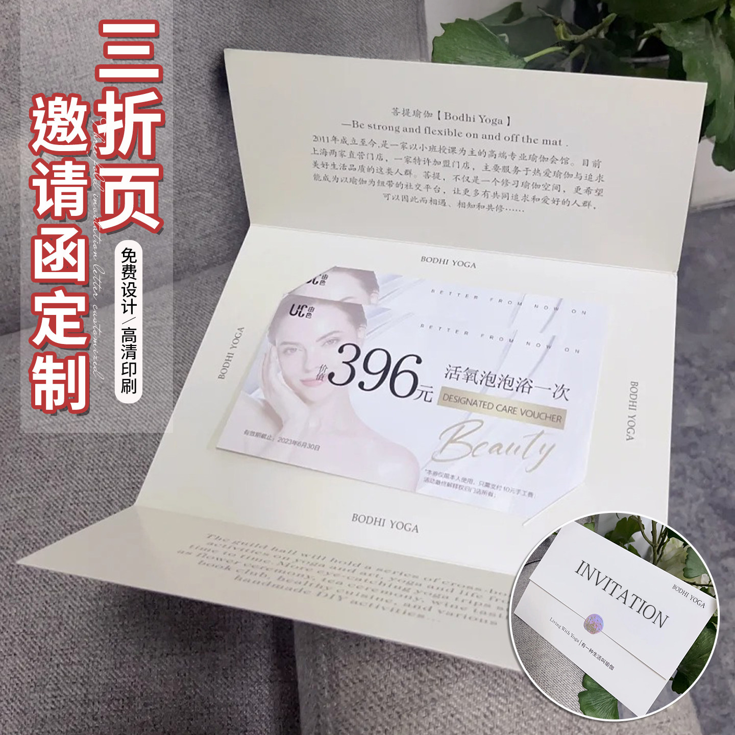 三折页信封邀请函定制vip会员卡套美容院医美贵宾卡邀请函请柬贴感谢贺卡礼品封套订制pvc礼品卡储蓄卡印刷