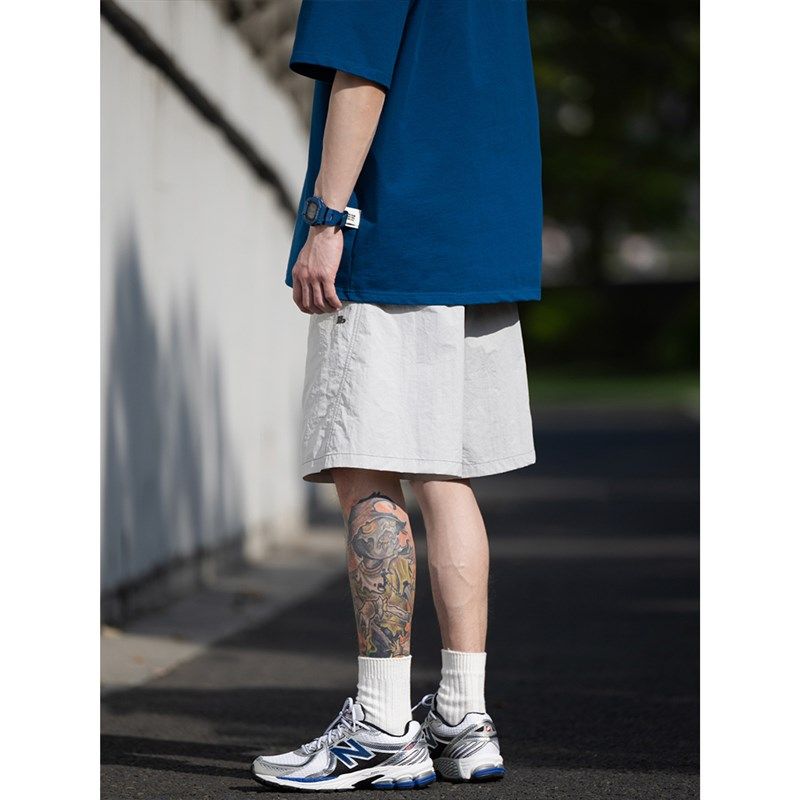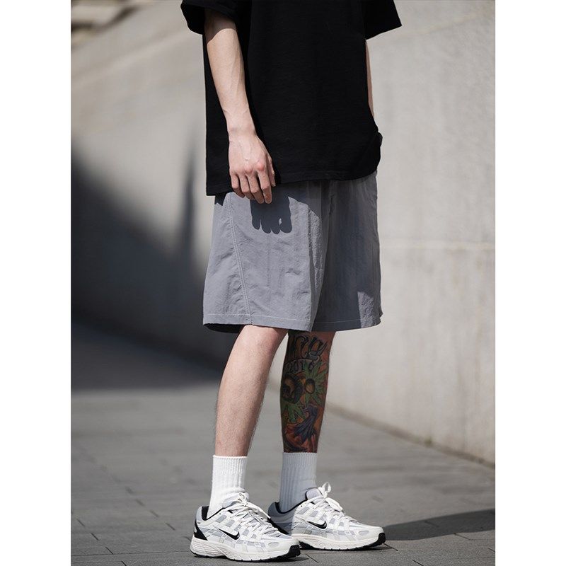 速发B闲KE基D 速干运动休EI础廓形纯色百搭五分裤短裤男沙滩裤