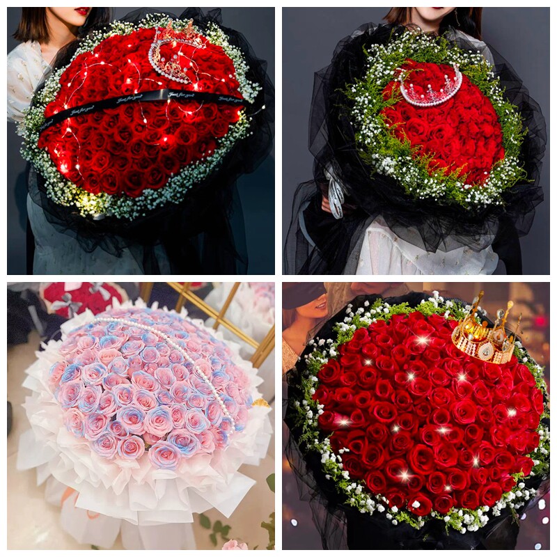邯郸成安县临漳县大名县鸡泽县生日碎冰蓝红玫瑰花束同城鲜花店