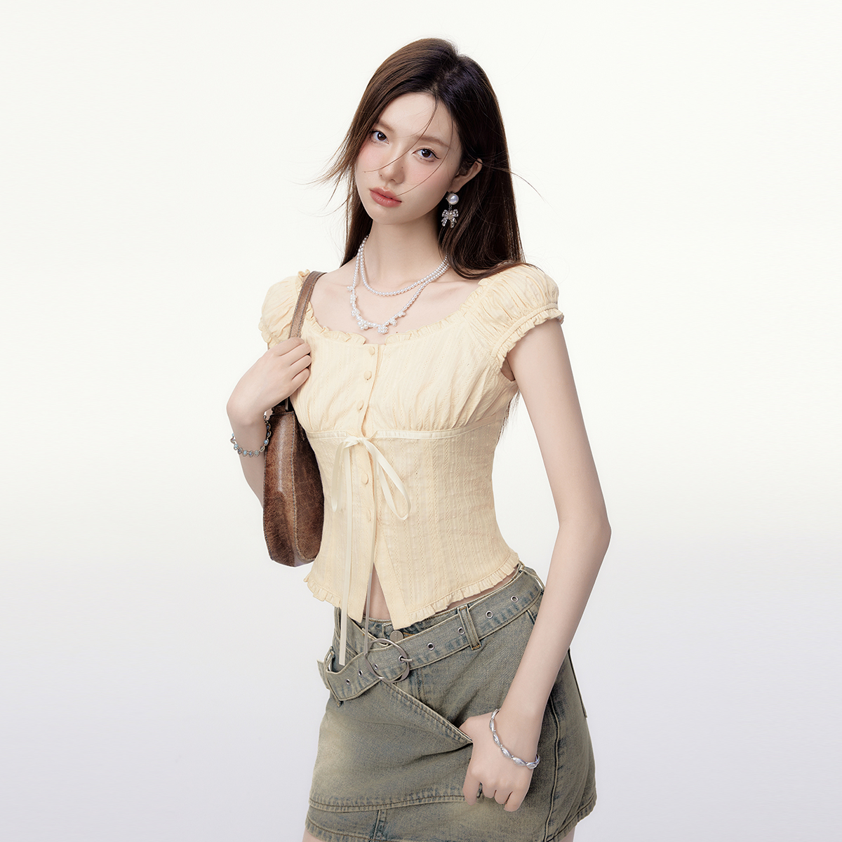 EPTISON方领甜美短款小衬衫