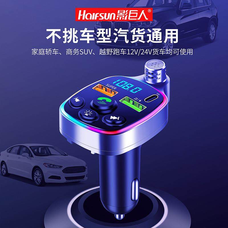 影巨人车载充电器超级闪快充蓝牙MP3接收器听歌播放高音质多功能