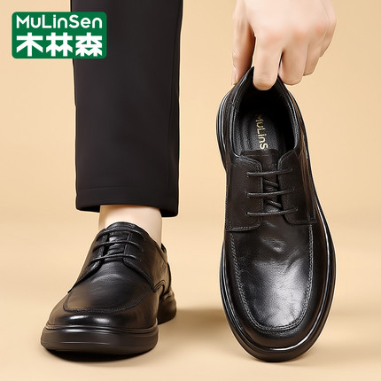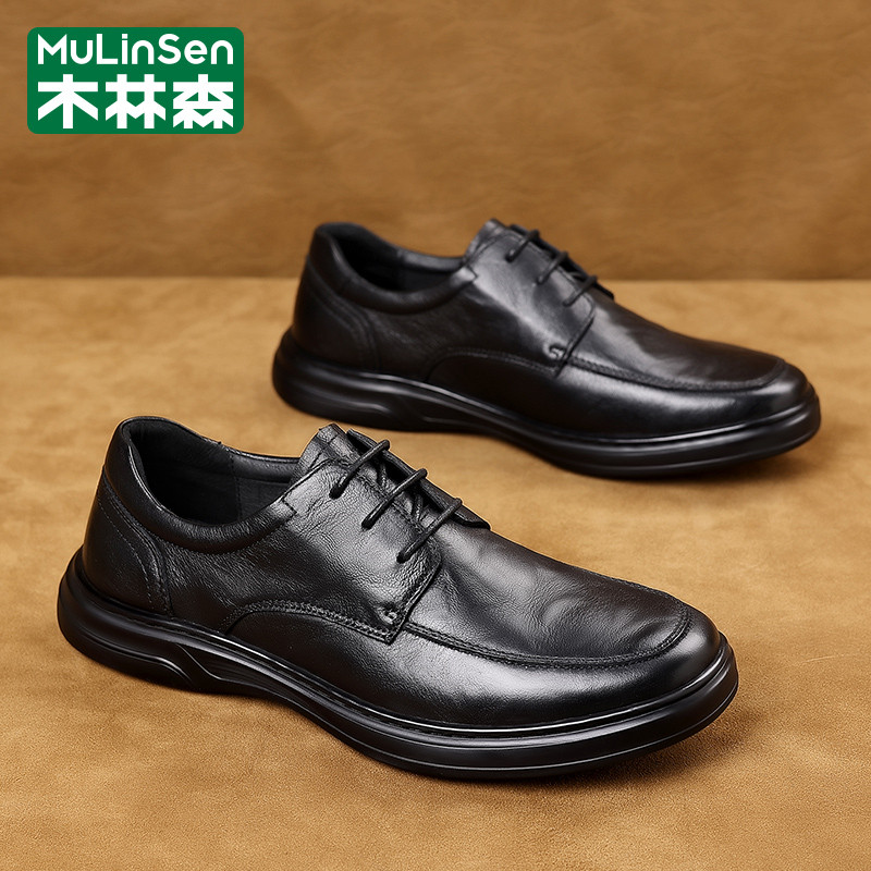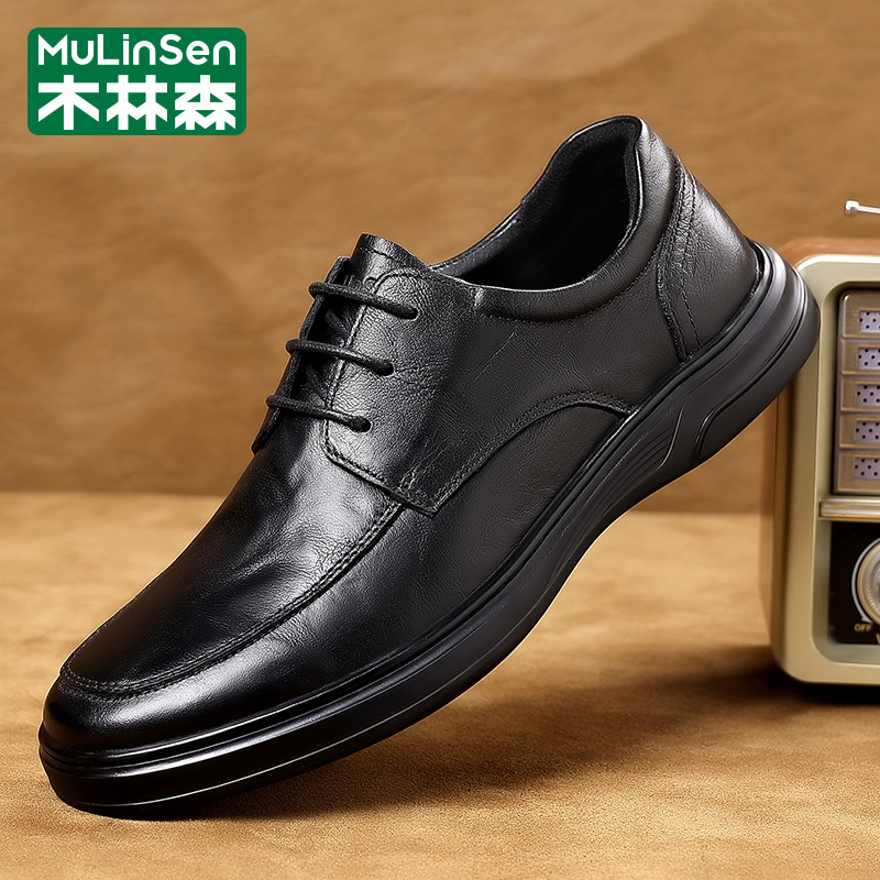 木林森休闲皮鞋男2026新款春季商务通勤正装头层牛皮厚底爸爸潮鞋