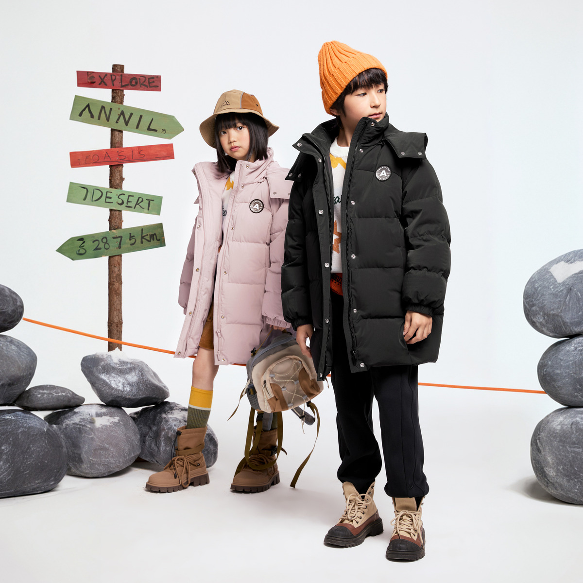 安奈儿男女童装中长款连帽羽绒服2025冬季加厚保暖外套户外防风