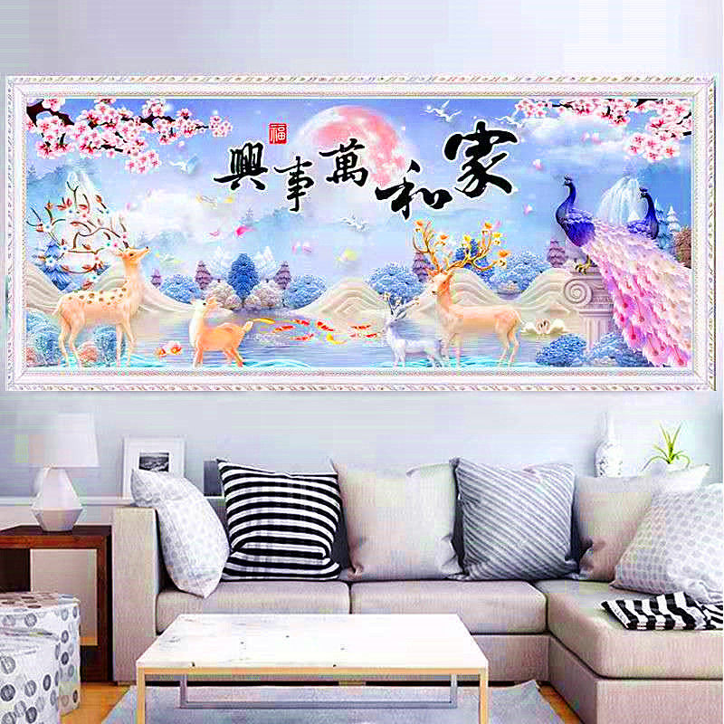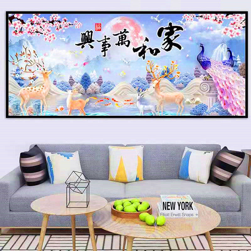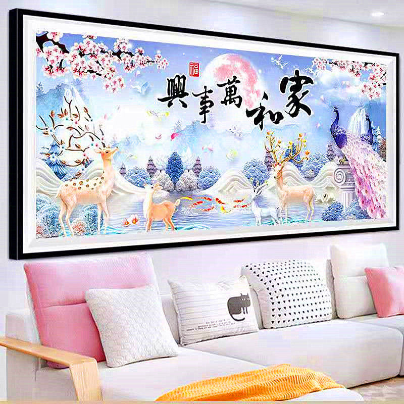 全珠绣十字绣家和万事兴穿珠子绣客厅满珠麋鹿彩珠孔雀丝线绣串珠