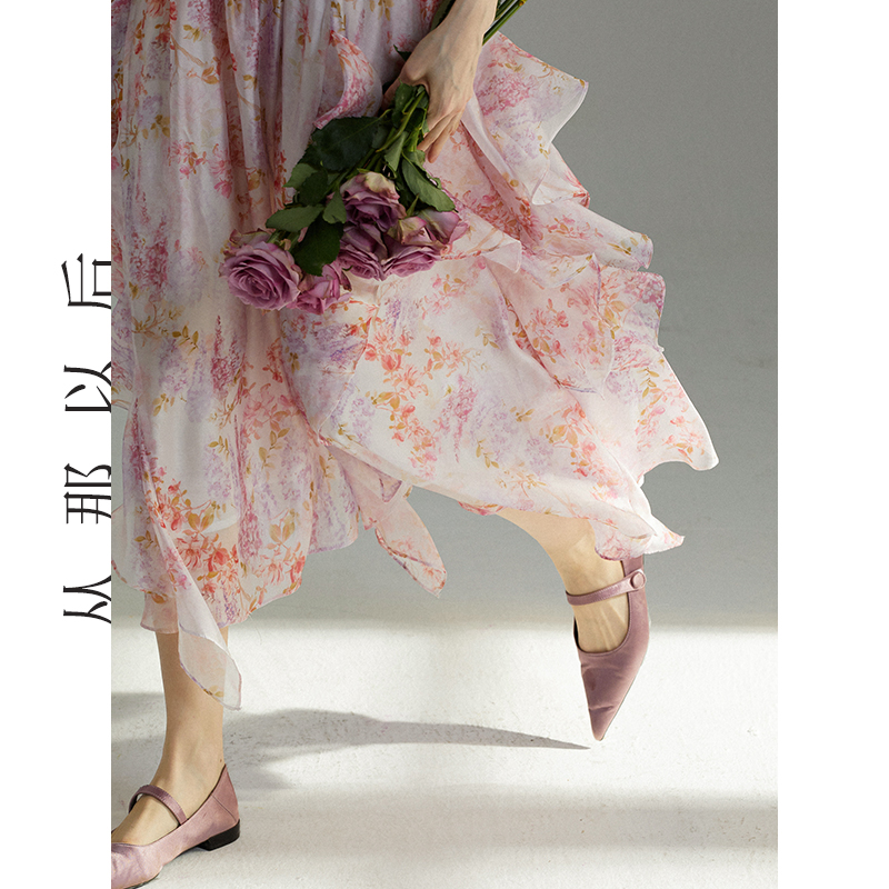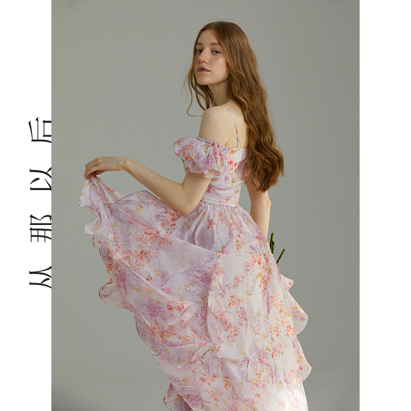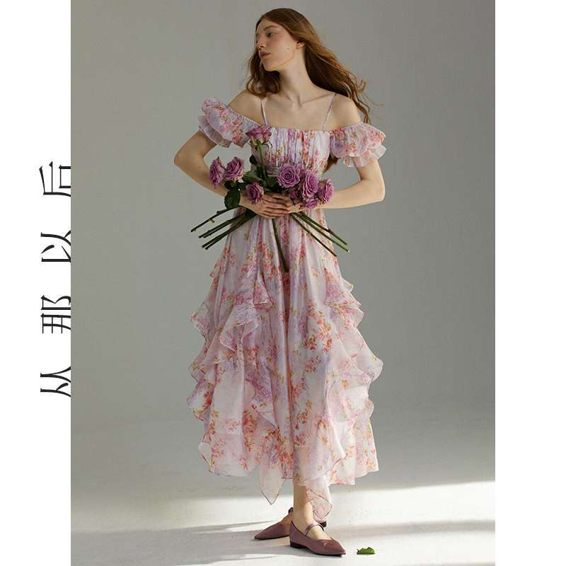 从那以后邂逅苏莱曼法式浪漫碎花吊带裙一字肩长裙气质茶歇连衣裙
