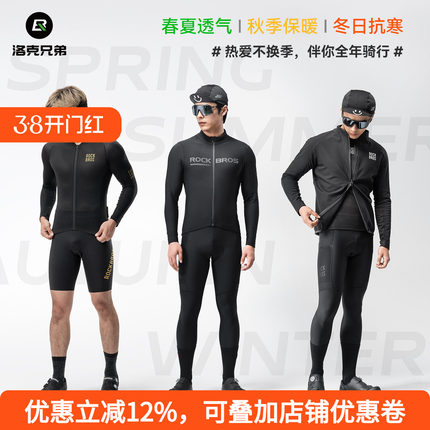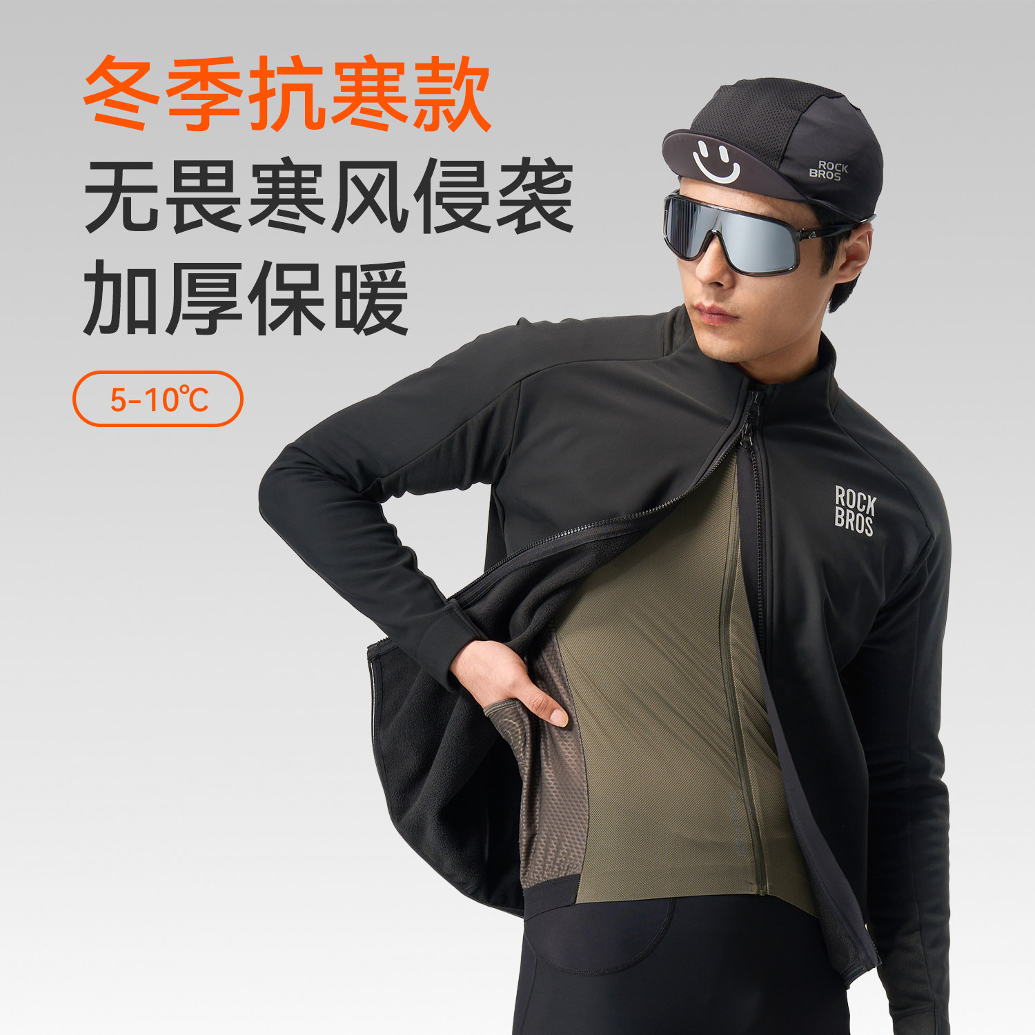 洛克兄弟公路山地车骑行服套装抓绒保暖长袖长裤运动服男女秋冬季