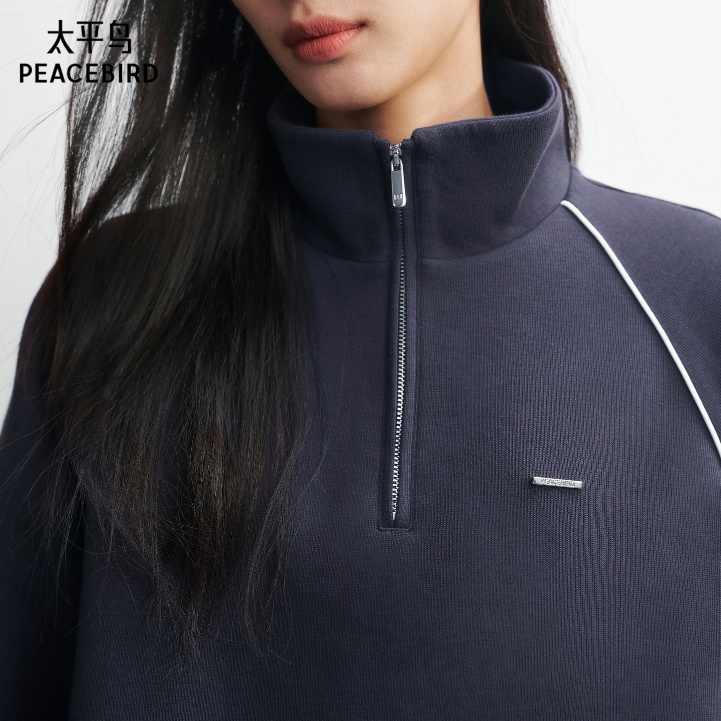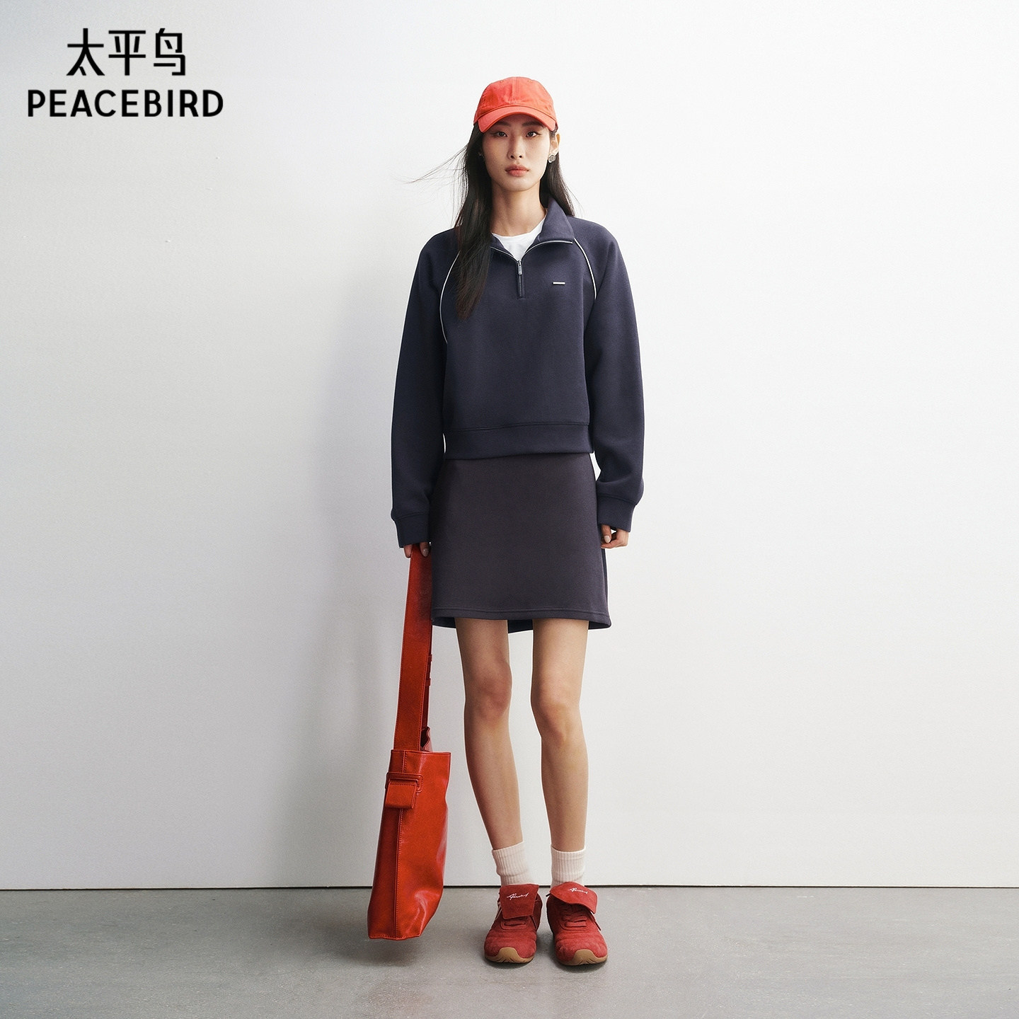 【商场同款】太平鸟半拉链藏青色卫衣套装连衣裙女新款A3FCG1201